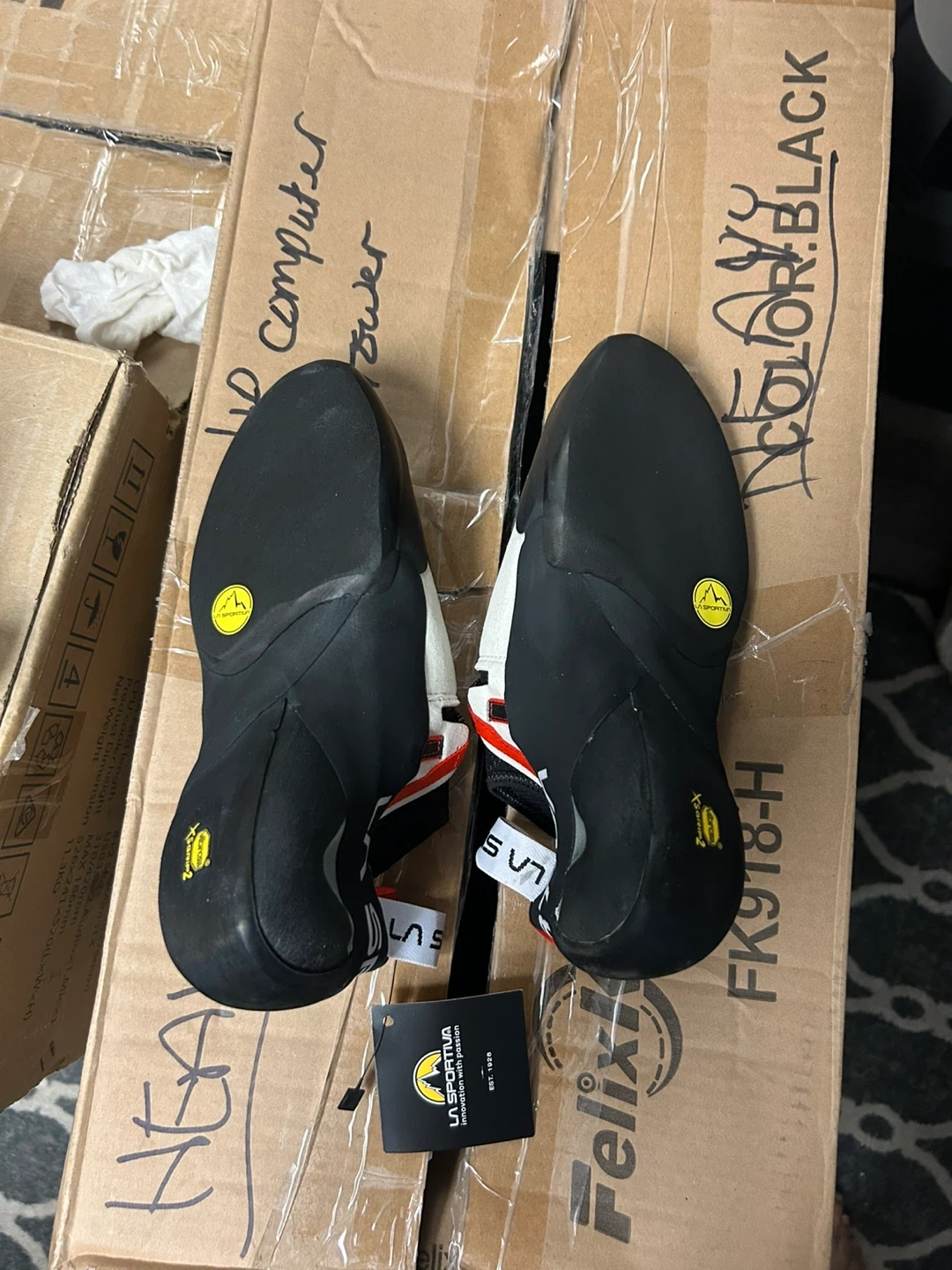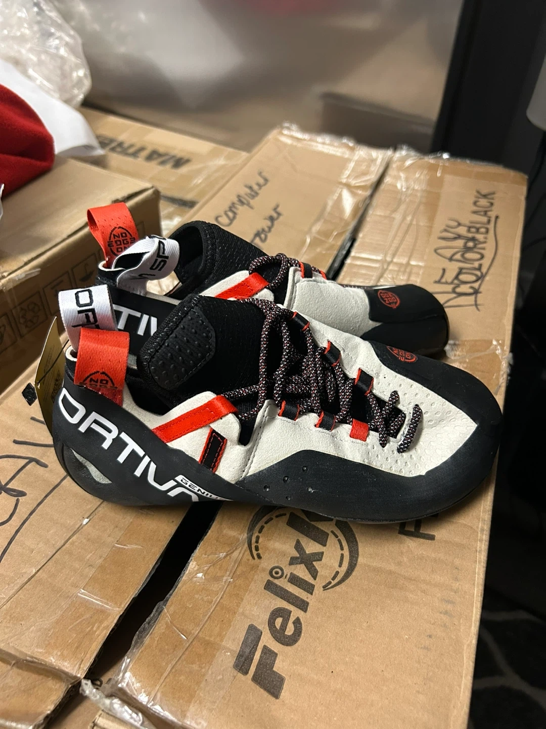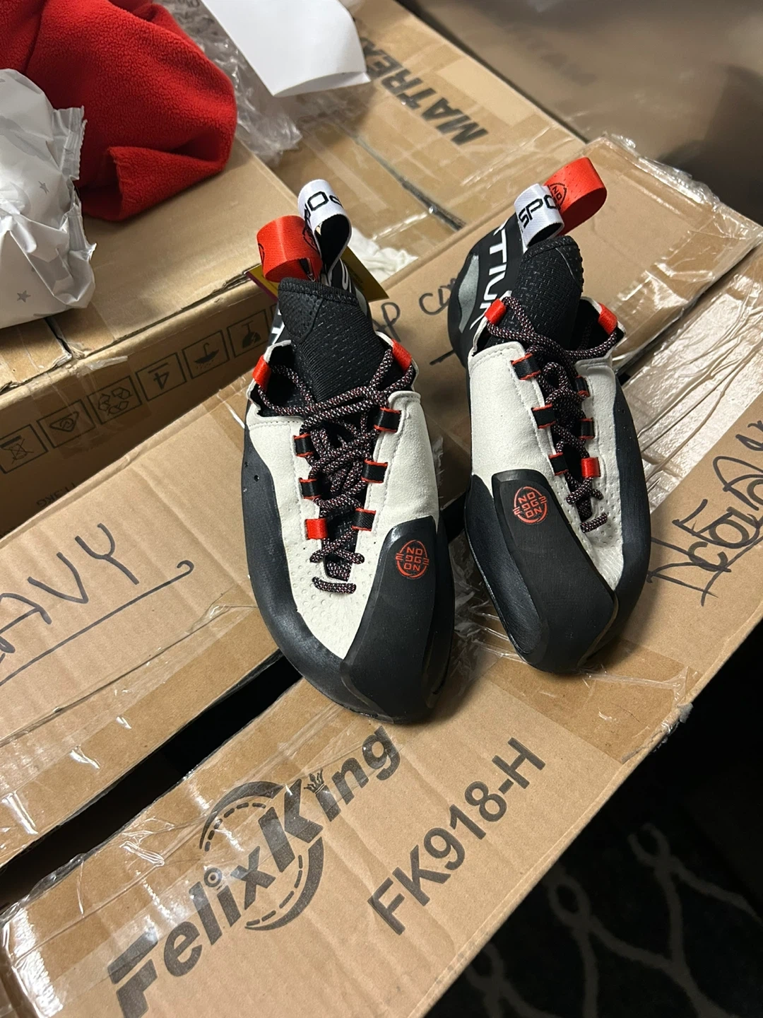 Selling a pair of La Sportiva Genius Chalk climbing shoes in size 8.5 (USA Man), 9.5 (USA Women). These shoes are in great condition and ready for your next climbing adventure! The box is included.