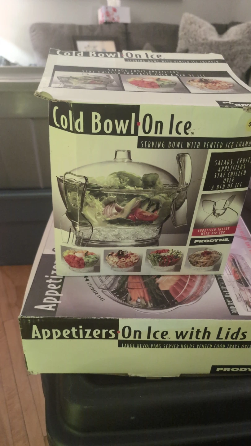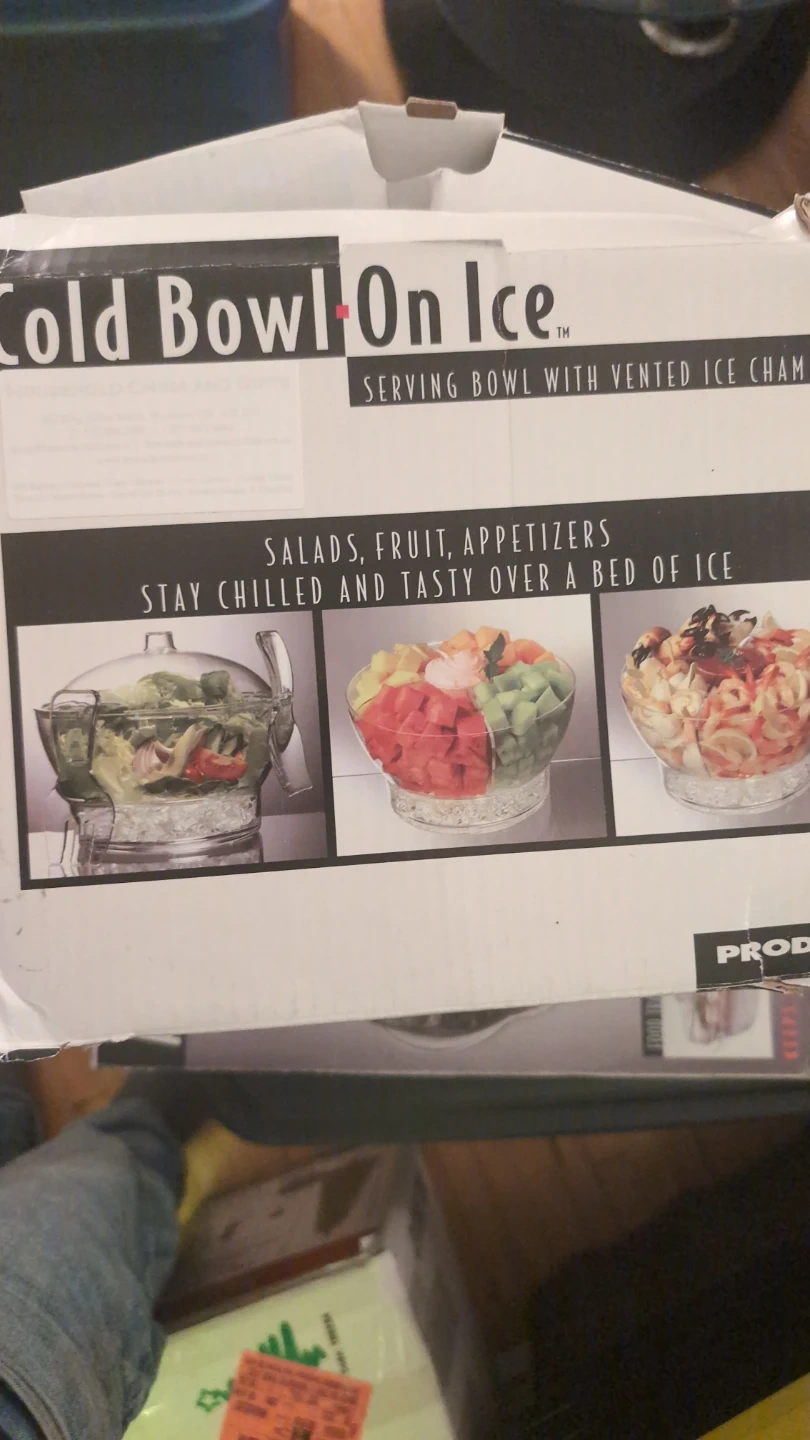 Serving bowl with vented ice chamber. Great for keeping salads, fruit, and appetizers chilled and tasty over a bed of ice