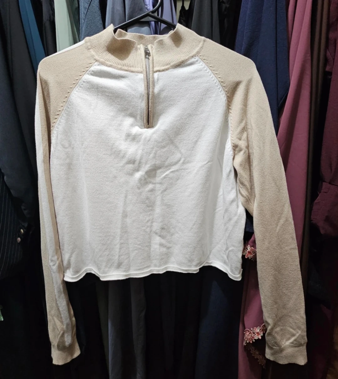 Selling an Ardene pullover in a lovely beige and white colour combination. It's a size L and in great condition, ready to add a stylish touch to your wardrobe!