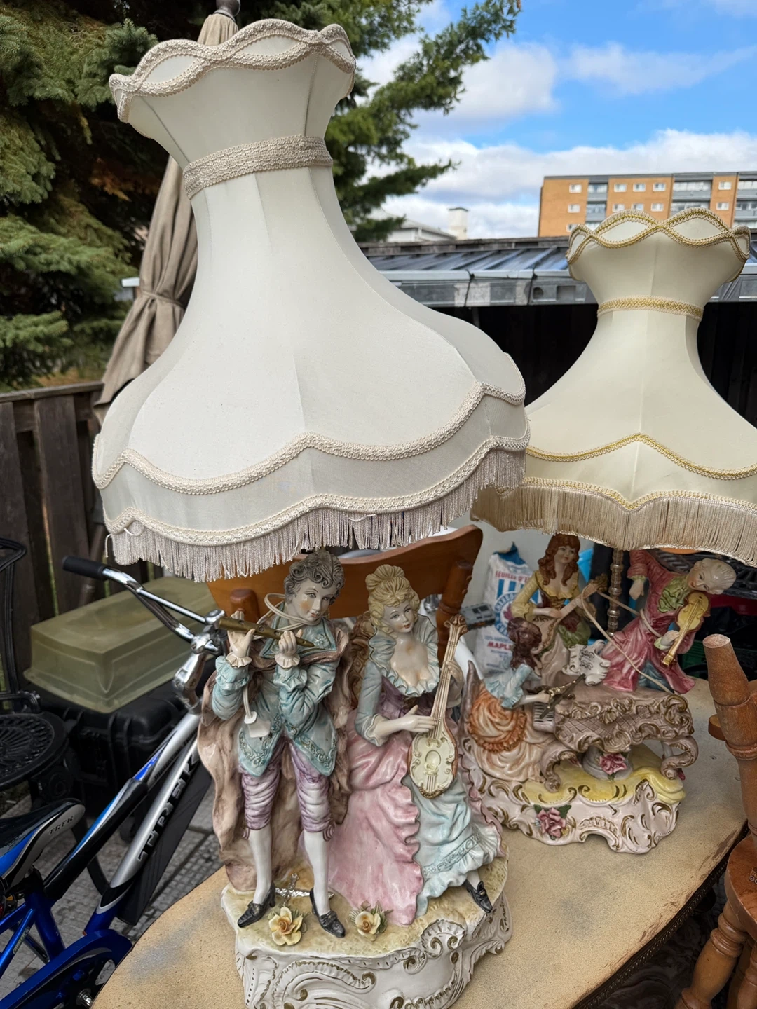 Beautiful Capodimonte lamps, made in Italy! These lamps feature intricate details and are in great condition. They would add a touch of elegance to any room. 2 lamps