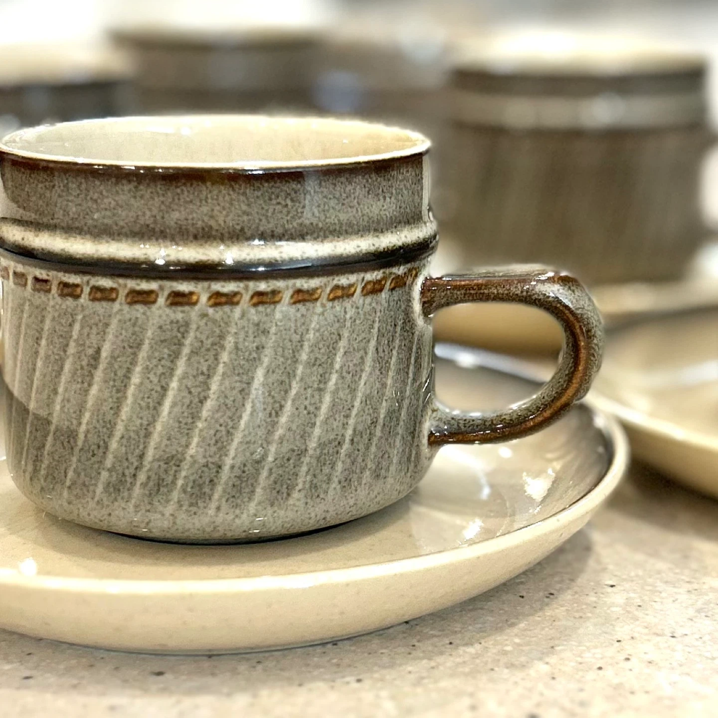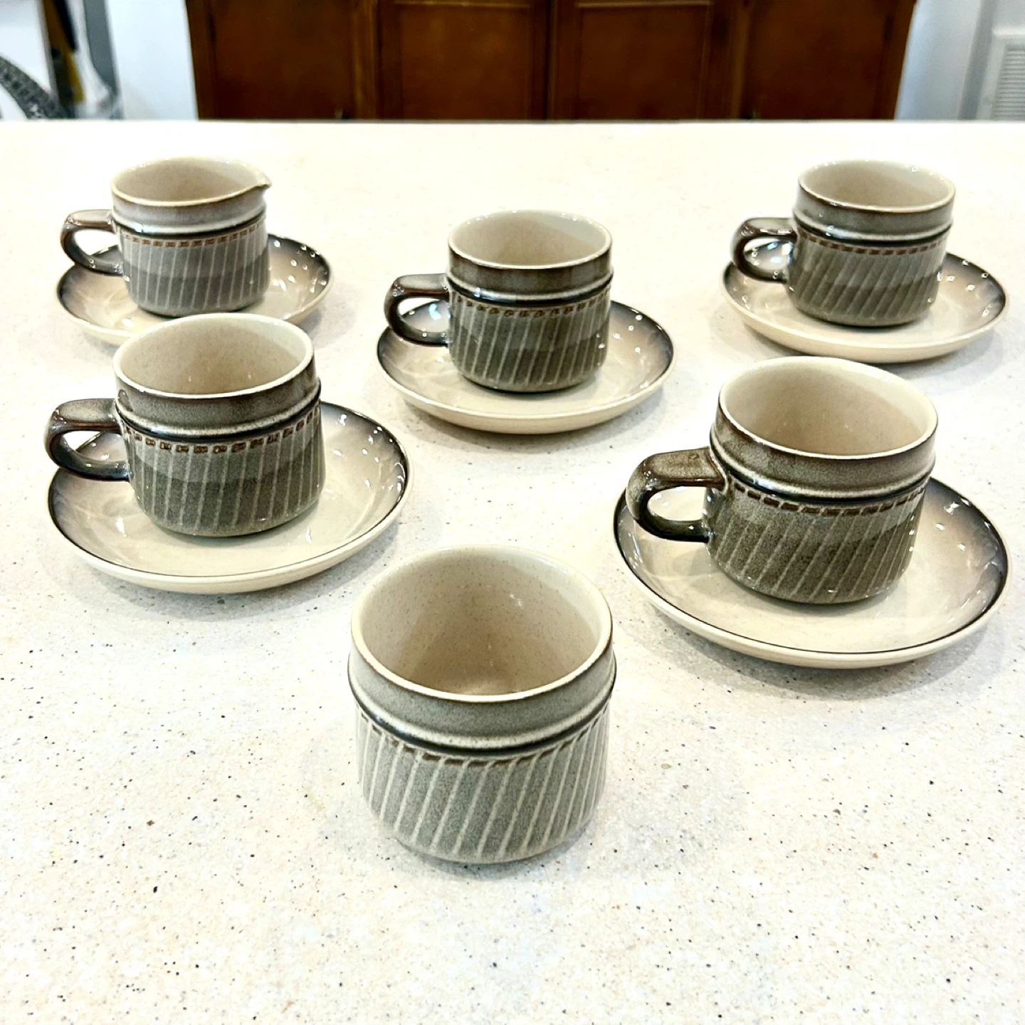 Complete coffee groupings with creamer and sugar are significantly harder to find than cups alone.