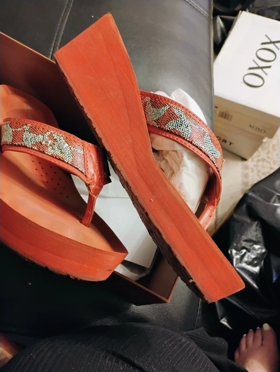 Selling a pair of Coach women's wedges in size 7.5M! They are a vibrant red color and come with the original box, used in very good condition. Pickup from Maspeth Queens, blks from Long Island Expwy. From a smoke pet free home, check out my other shoes, boots, sandals & sneakers for greater deals on multiple purchases.