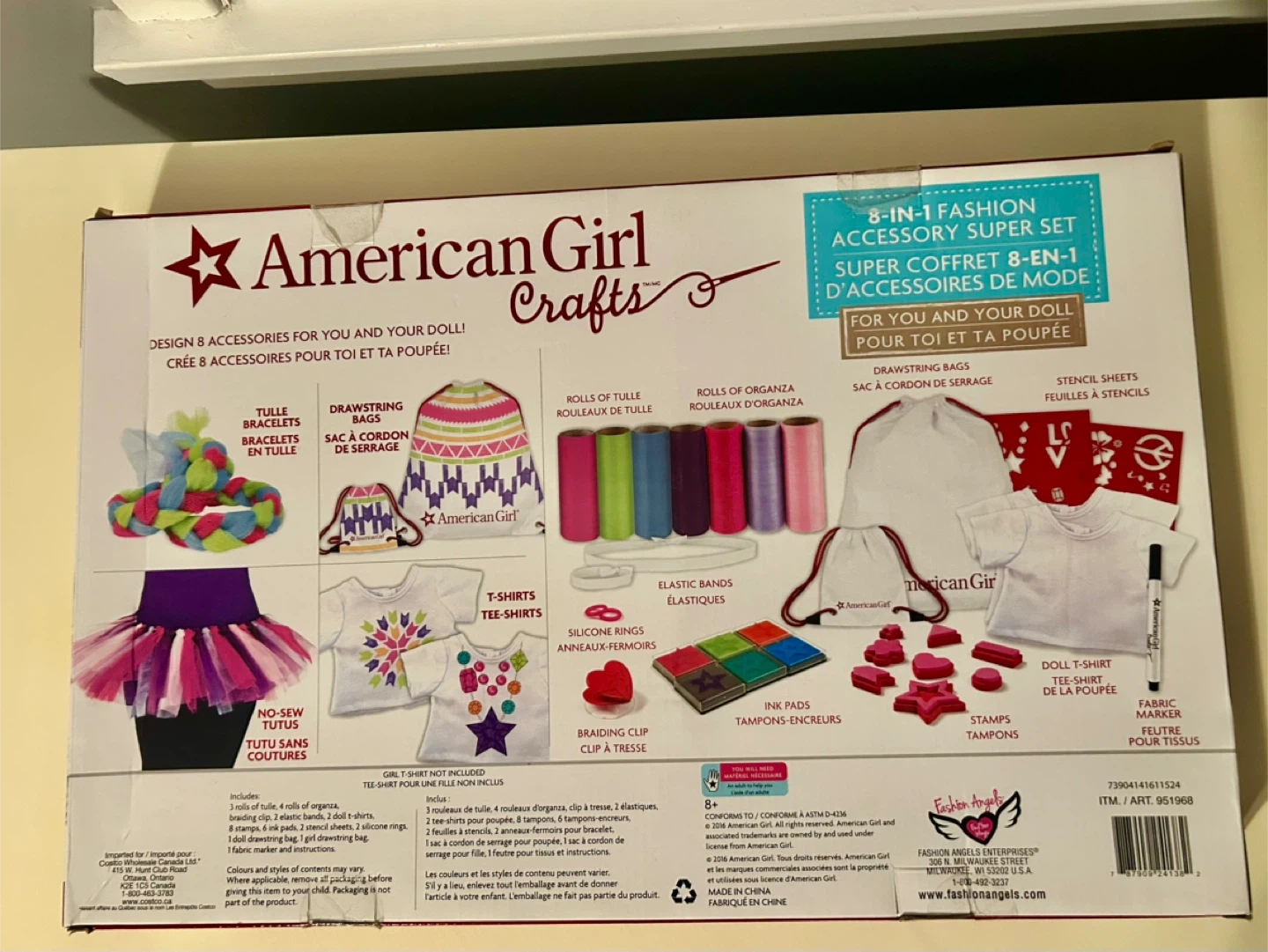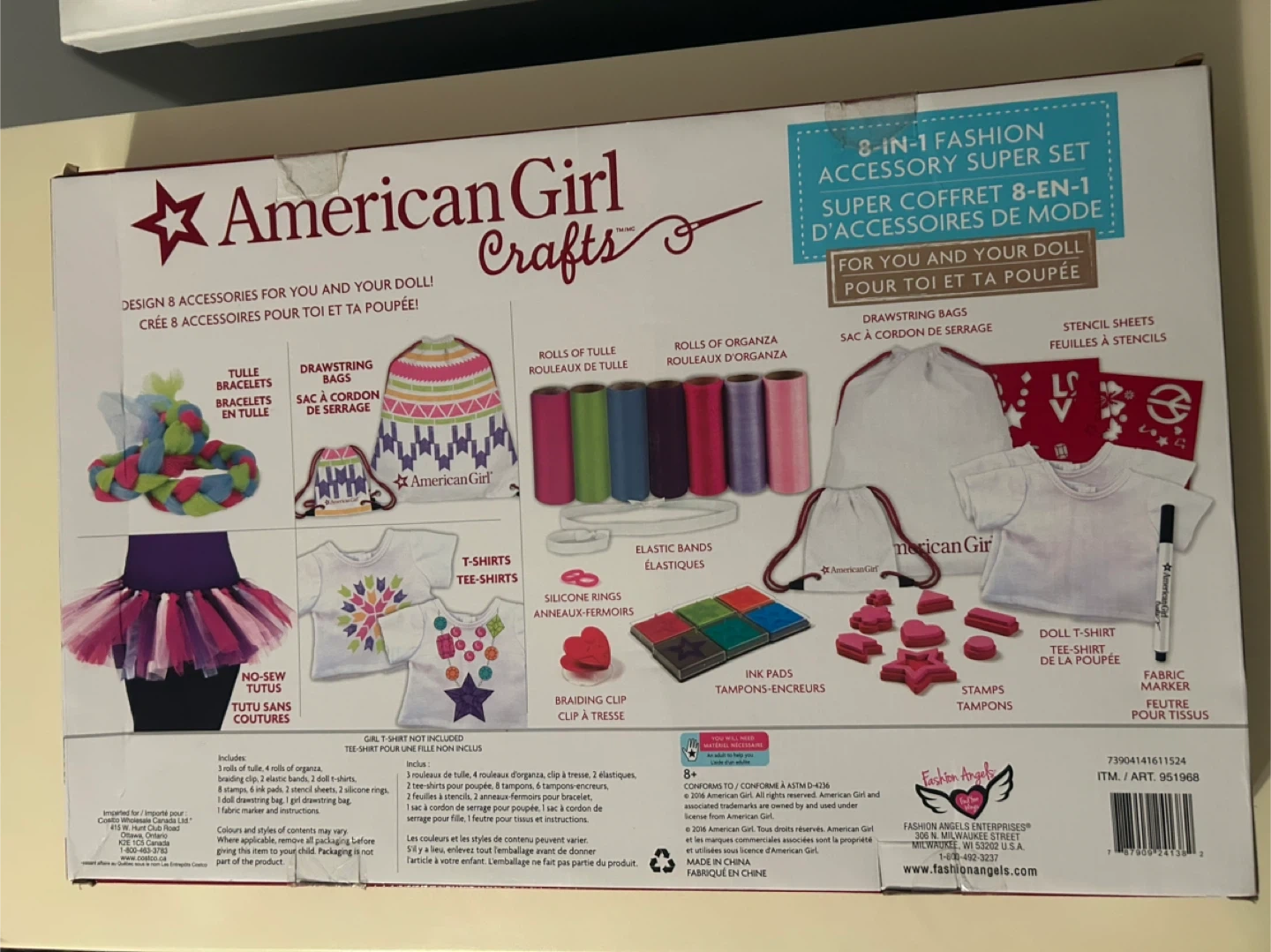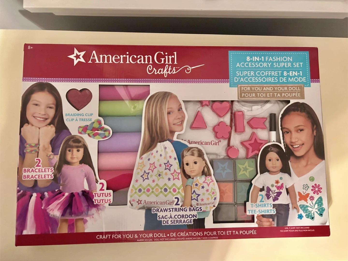 Selling a new never used, retired and no longer available, American Girl Crafts 8-in-1 Fashion Accessory Super Set! This set includes everything you need to design accessories for your doll. It includes rolls of tulle, organza, elastic bands, drawstring bags, stencils, ink pads, stamps, a fabric marker, and more! Craft for you and your doll!