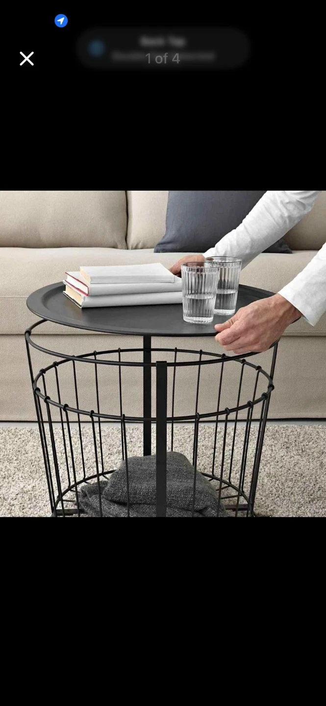 Selling a black IKEA Gualov storage table! It's in great condition and perfect as a side table or coffee table. This lightweight and portable table is a great addition to any living space.