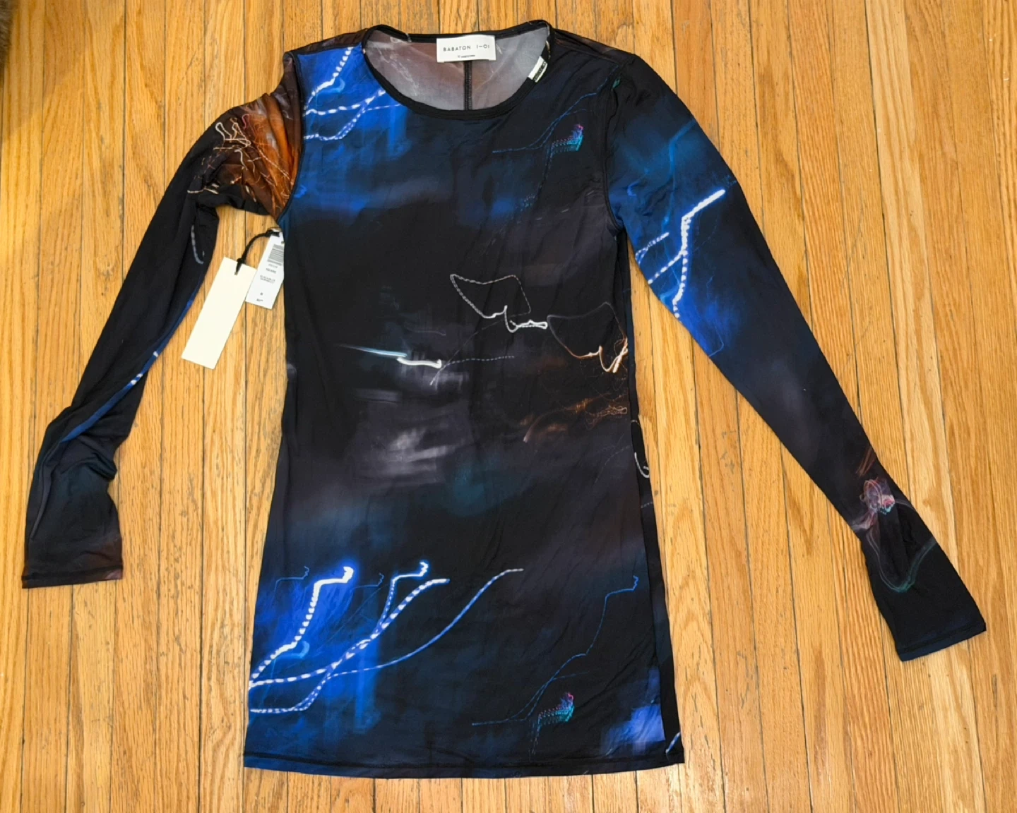 Selling a Babaton 1-01 Hesse dress in size medium. The dress features a striking black and blue design. It's in great condition and ready for a new owner!