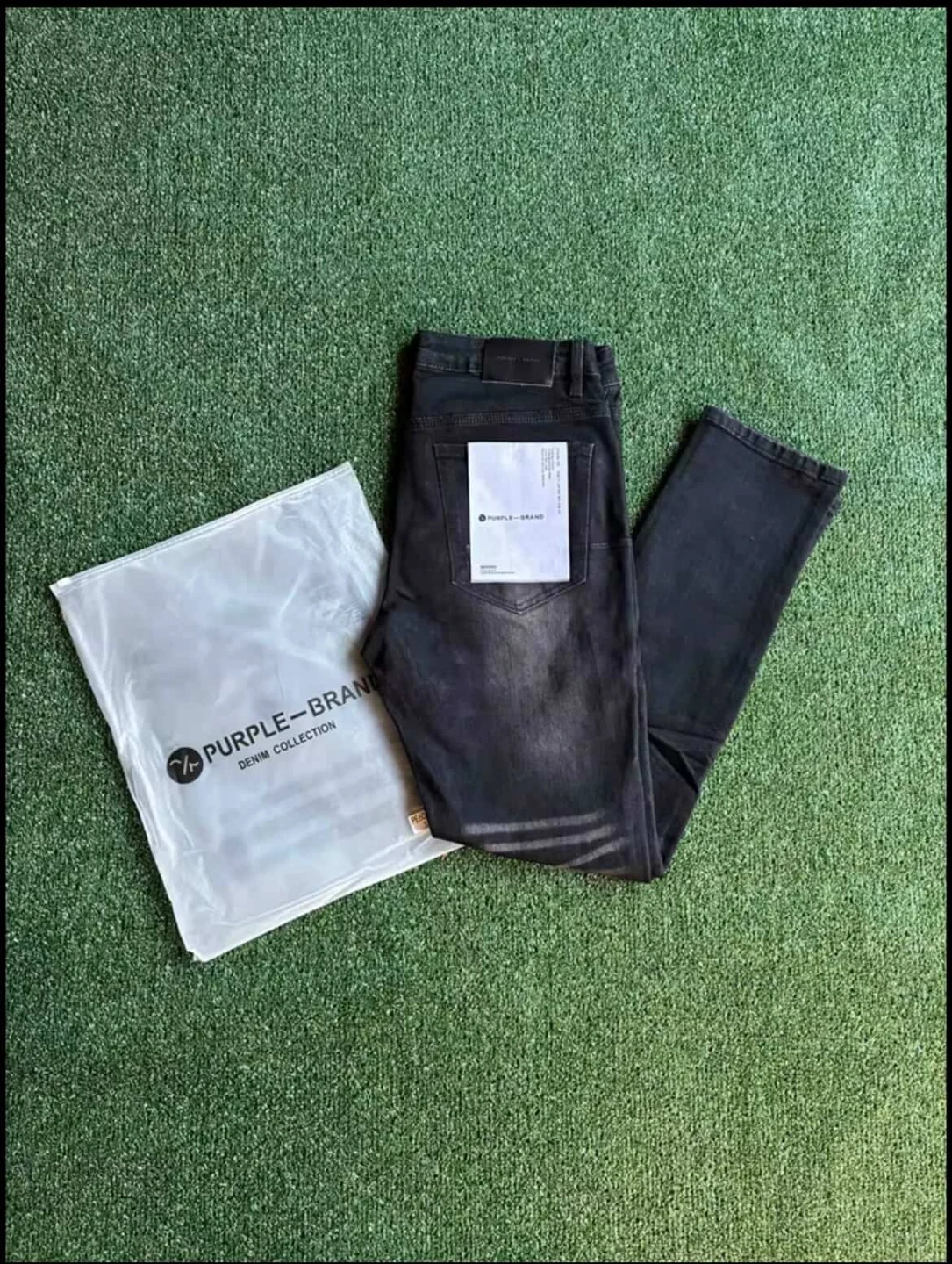 Selling a pair of Purple Brand denim jeans in black. They feature a stylish distressed design. Comes with original packaging!