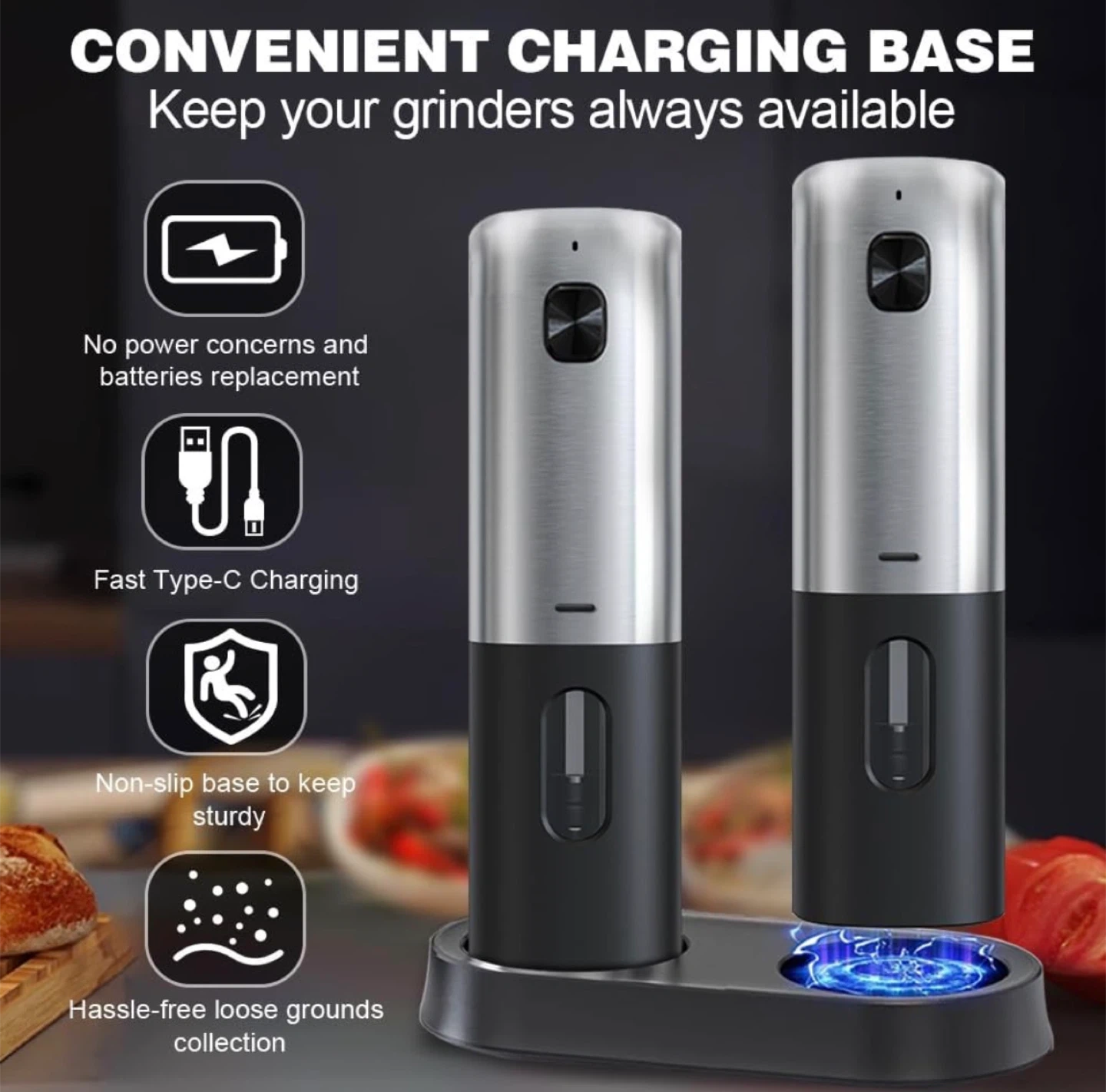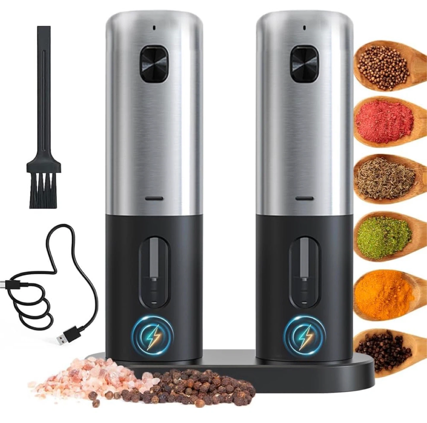 Electric Salt and Pepper Grinder Set with Charging Storage Base