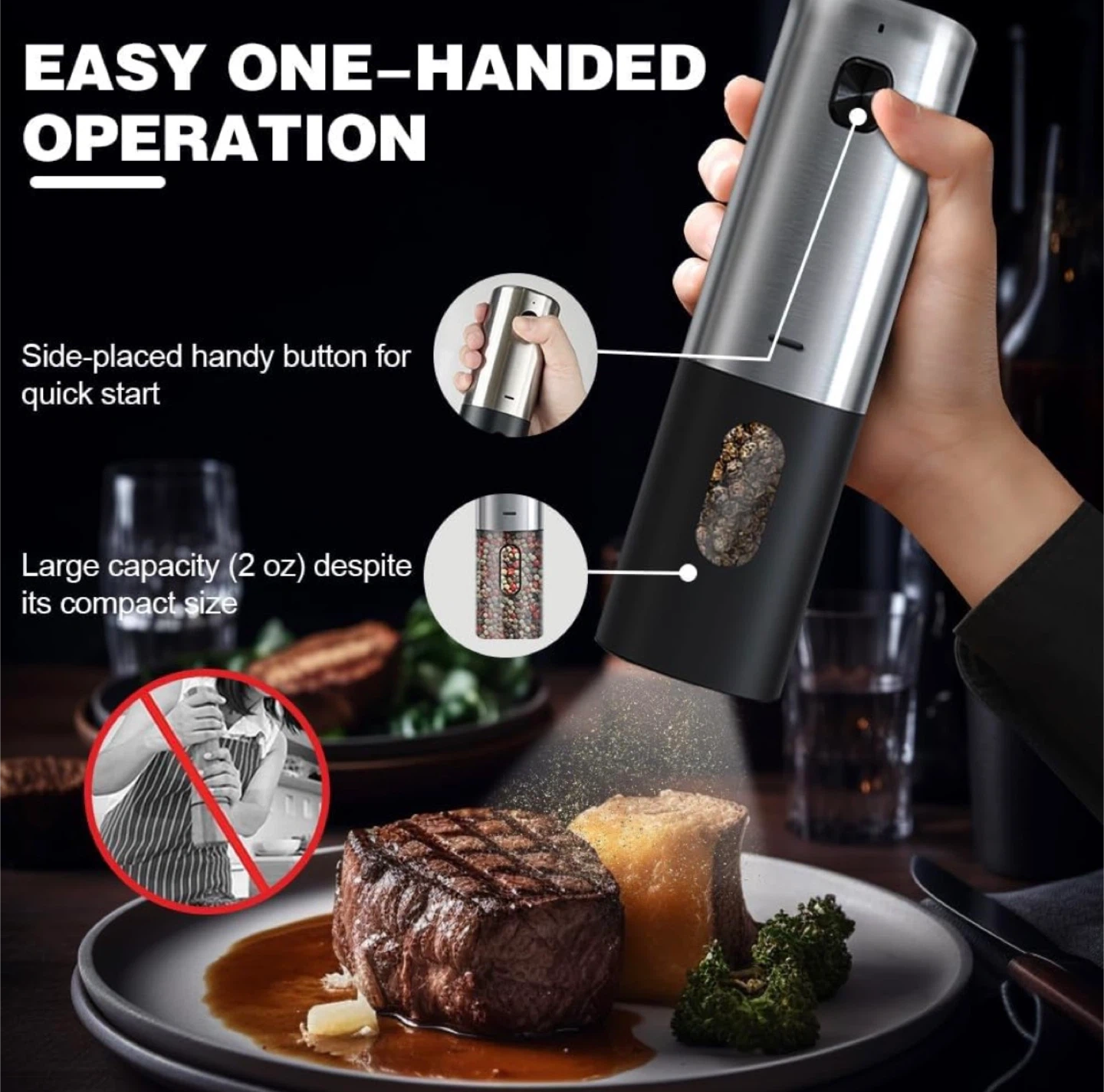 • Ergonomics and Usability: Compact, ergonomic design for one-handed operation with a user-friendly start button.