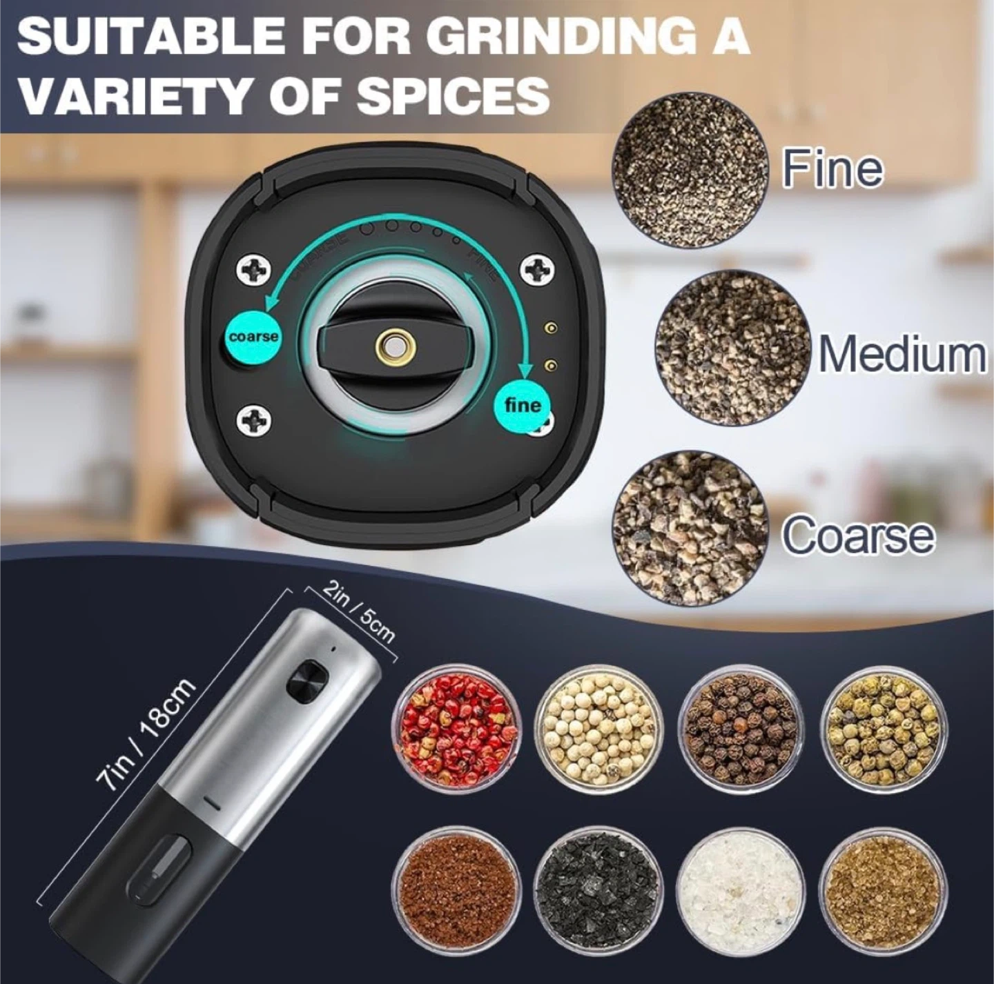 • Functionality: Electric grinder with a Type-C fast-charging base, illuminating work light, and adjustable grinding head.