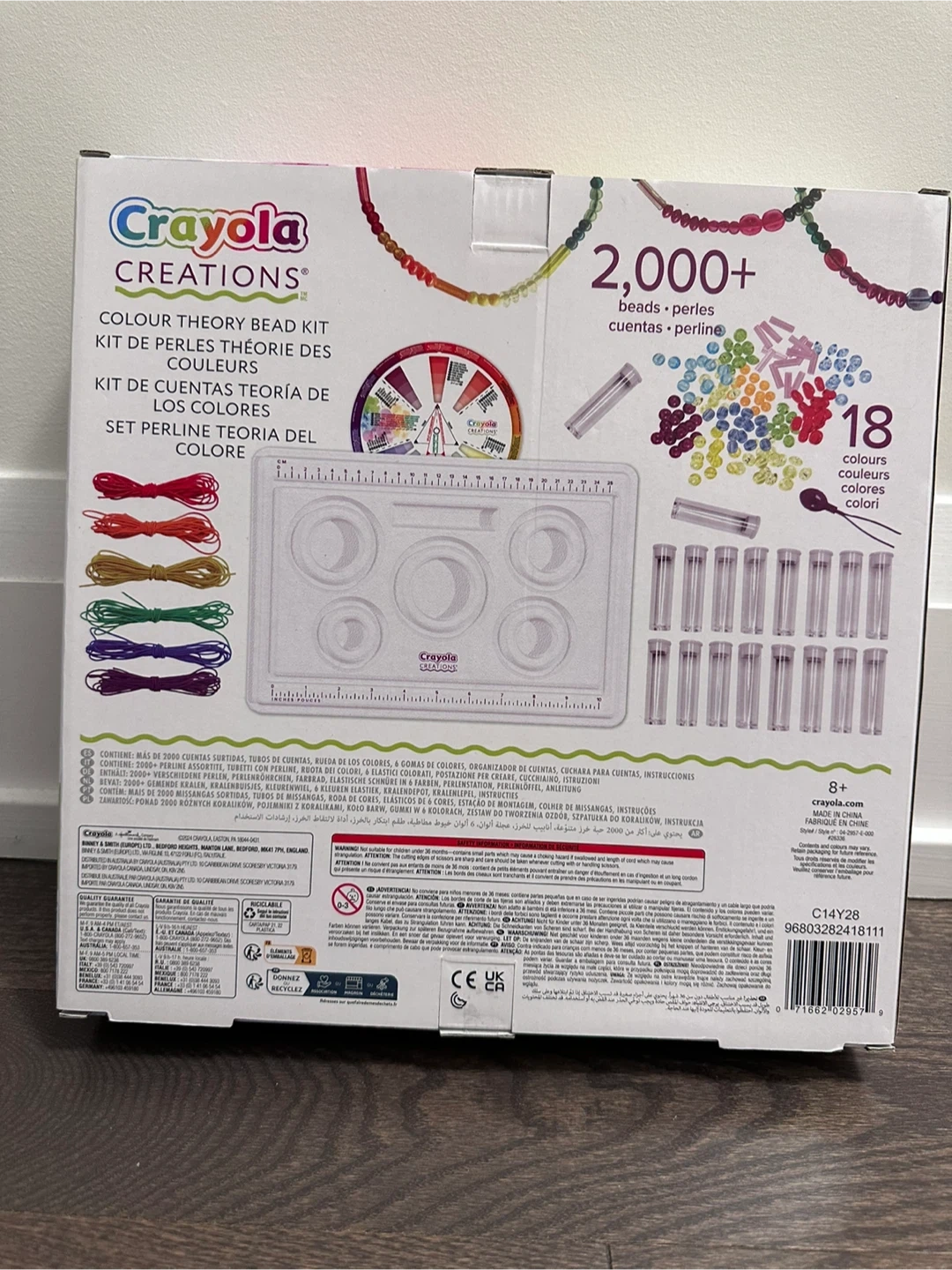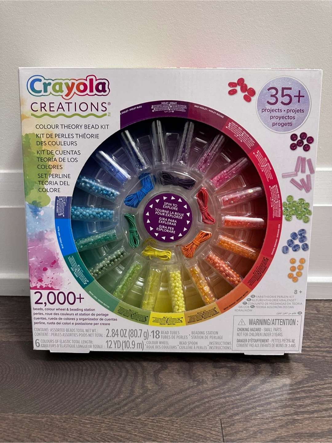 Brand new Crayola Creations Colour Theory Bead Kit! This set has everything you need to create over 35 projects. Includes over 2,000 beads in 18 different colours, elastic string, and instructions. Perfect for ages 8+
