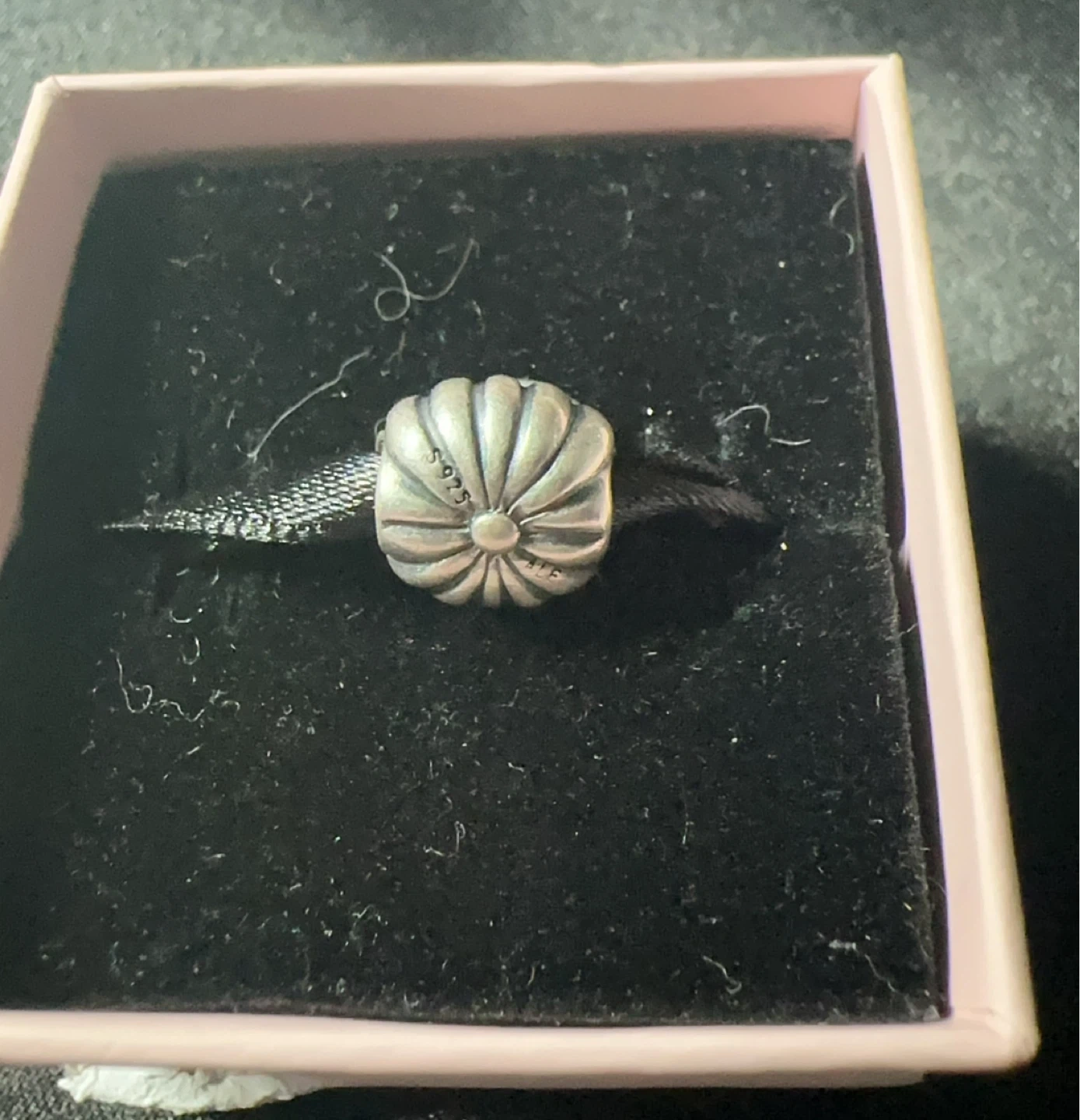 This is a Pandora Sleeping Cat charm. The charm is made of sterling silver and features a cute sleeping cat design.