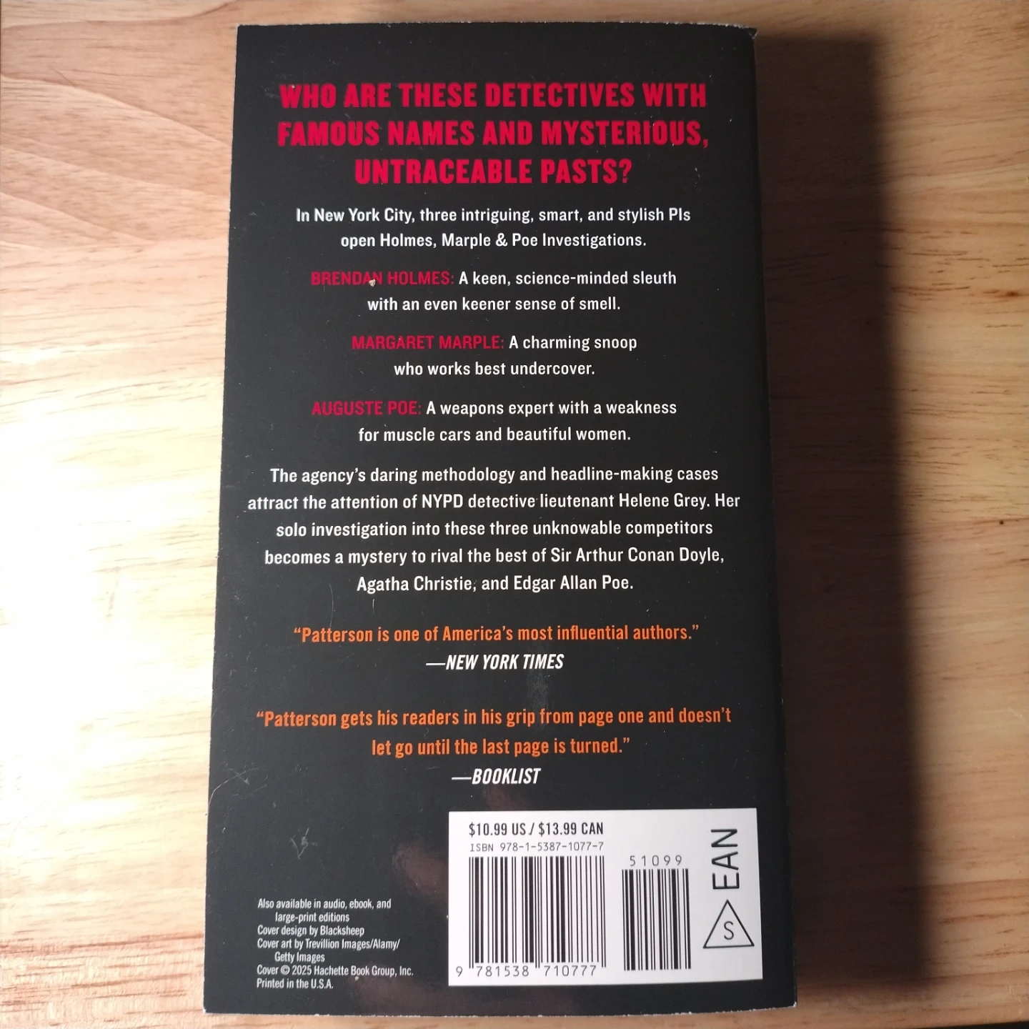 Selling a copy of "Holmes, Margaret & Poe" by James Patterson and Brian Sitts. A New York Times Bestseller, this book features three intriguing PIs in New York City. Originally priced at $13.99 CAD