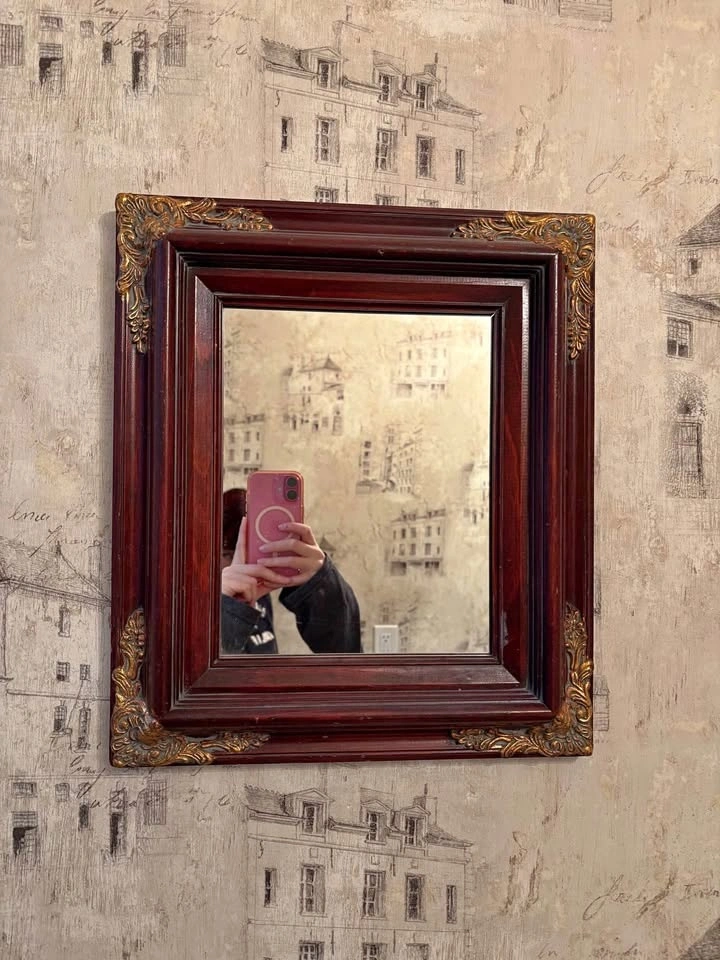 Vintage style mirror with gold detailing on corners, great little decor piece.