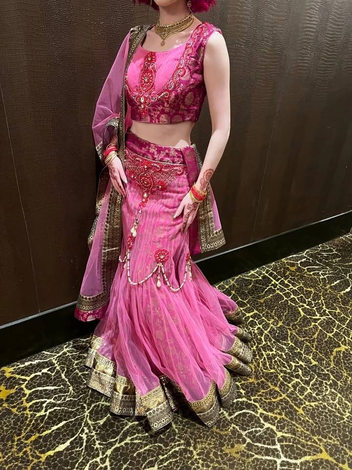 Bright Pink, Red, and Gold Lehenga