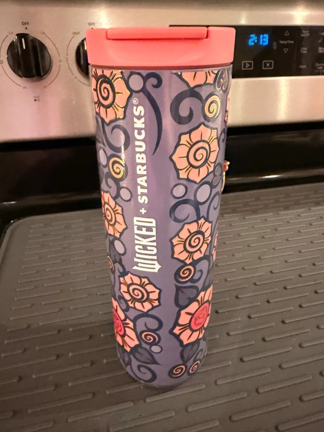 Selling a Starbucks Wicked tumbler! It's a lovely purple colour with a floral design. It holds 16 fl oz or 473 mL. It also comes with a cute Starbucks charm. Hand wash only!