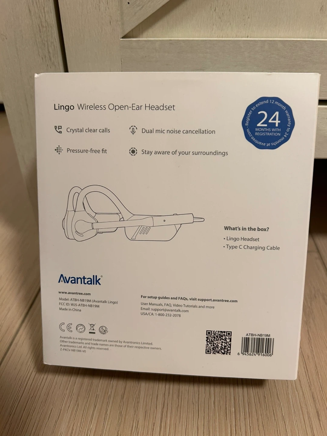 Avantalk Lingo - Open-Ear Wireless Headset with Noise-Cancelling Mic, Bluetooth Ear Hook Headphones for PC, Computer, Office Work or Home Calls, Lightweight & Comfortable