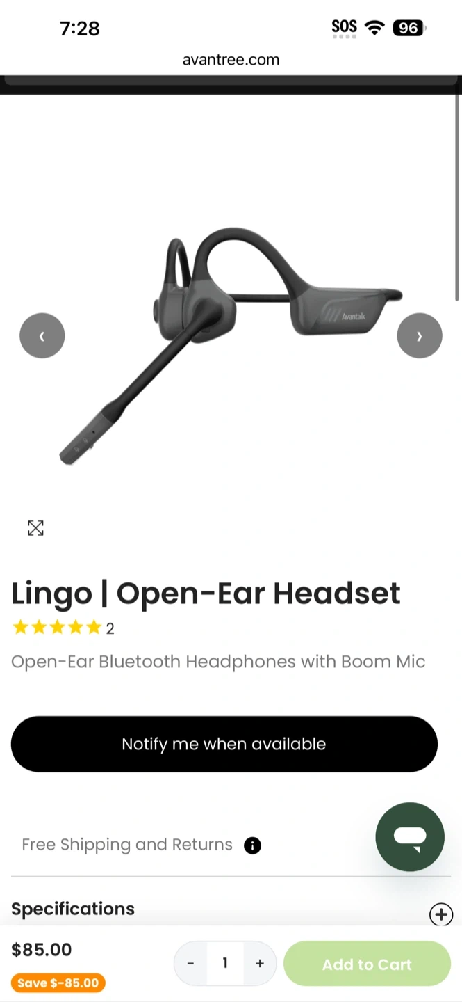 Open-Ear Wireless Headset with Noise-Cancelling Mic