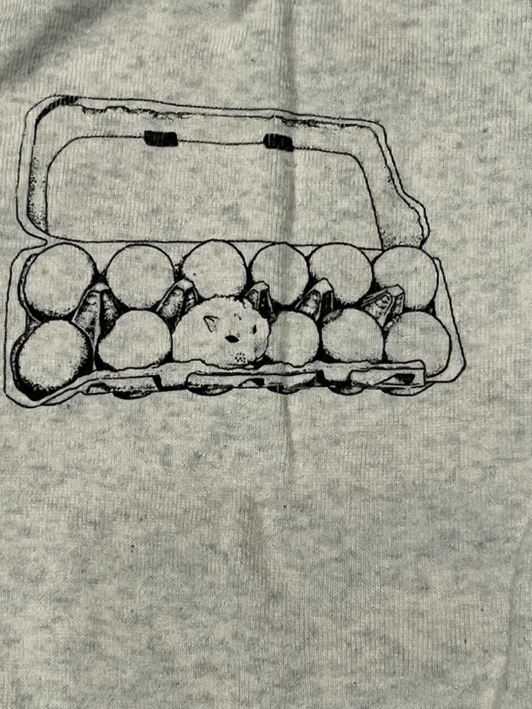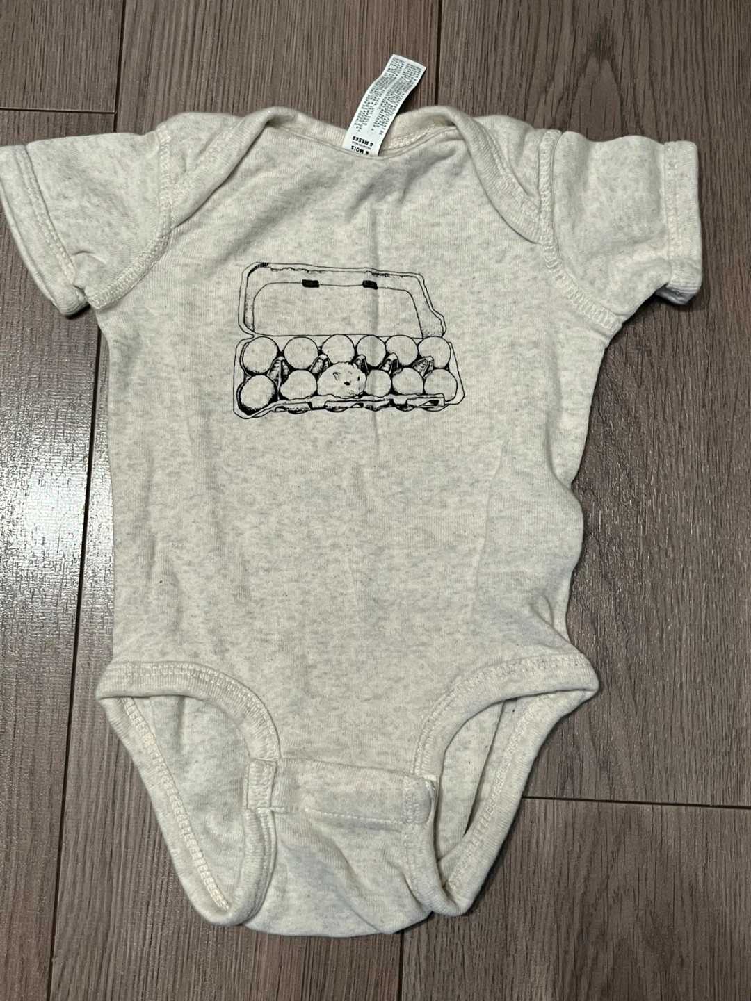 Cute Rabbit Skins onesie for a 3-6 month-old! The onesie has a unique design of a rabbit in an egg carton. It's in great condition and ready for your little one.
