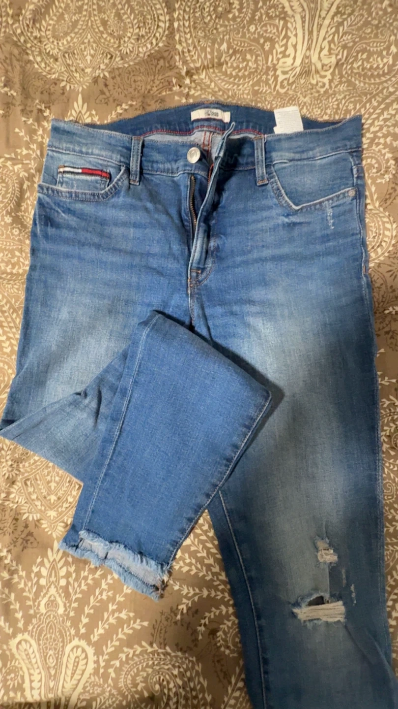 Selling a pair of Tommy Hilfiger skinny jeans in size 6. They're in great condition and have a stylish, modern look. Perfect for everyday wear!