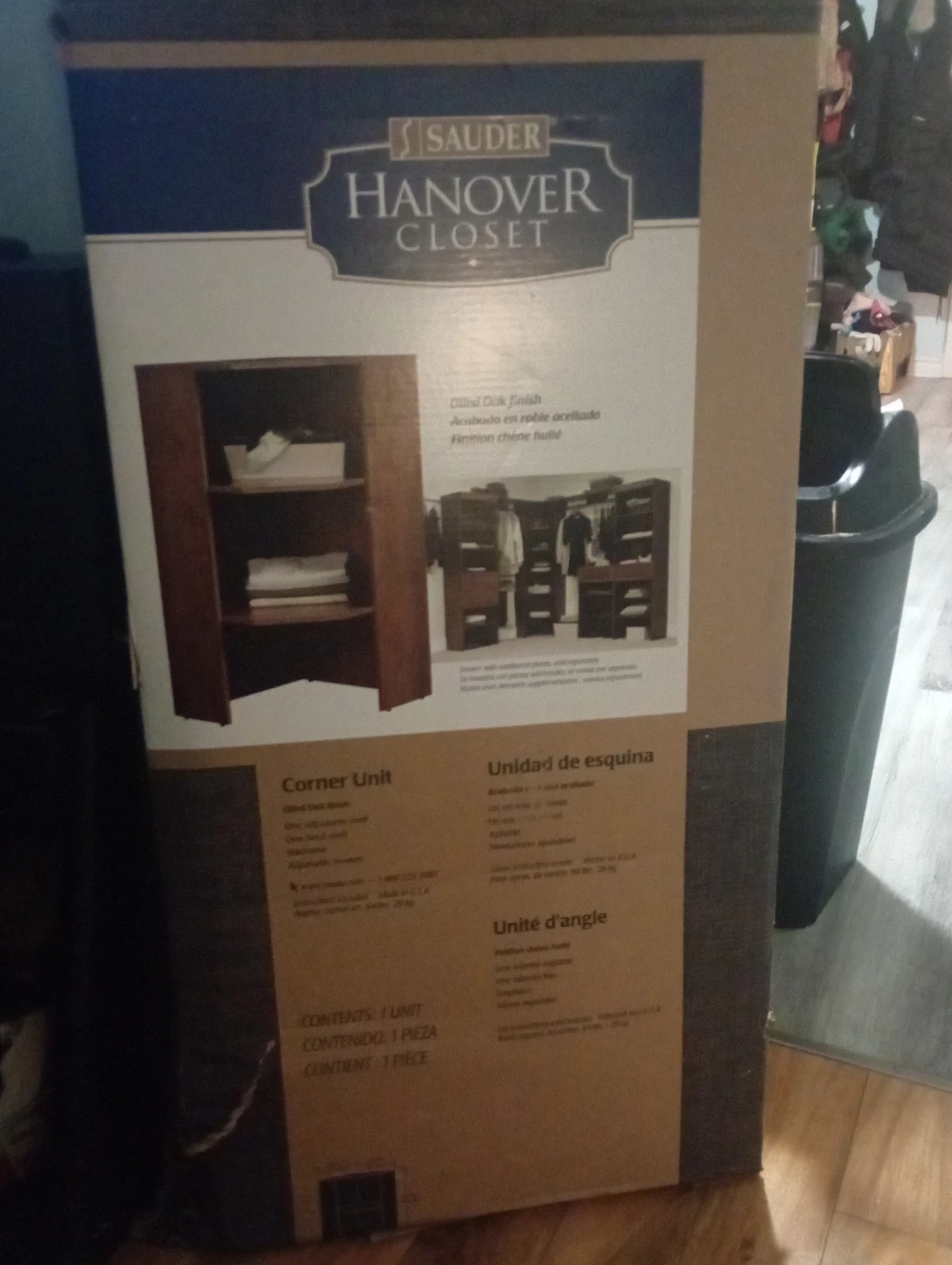 Selling a Sauder Hanover Closet Corner Unit. It has an oiled oak finish. Contents: 1 unit