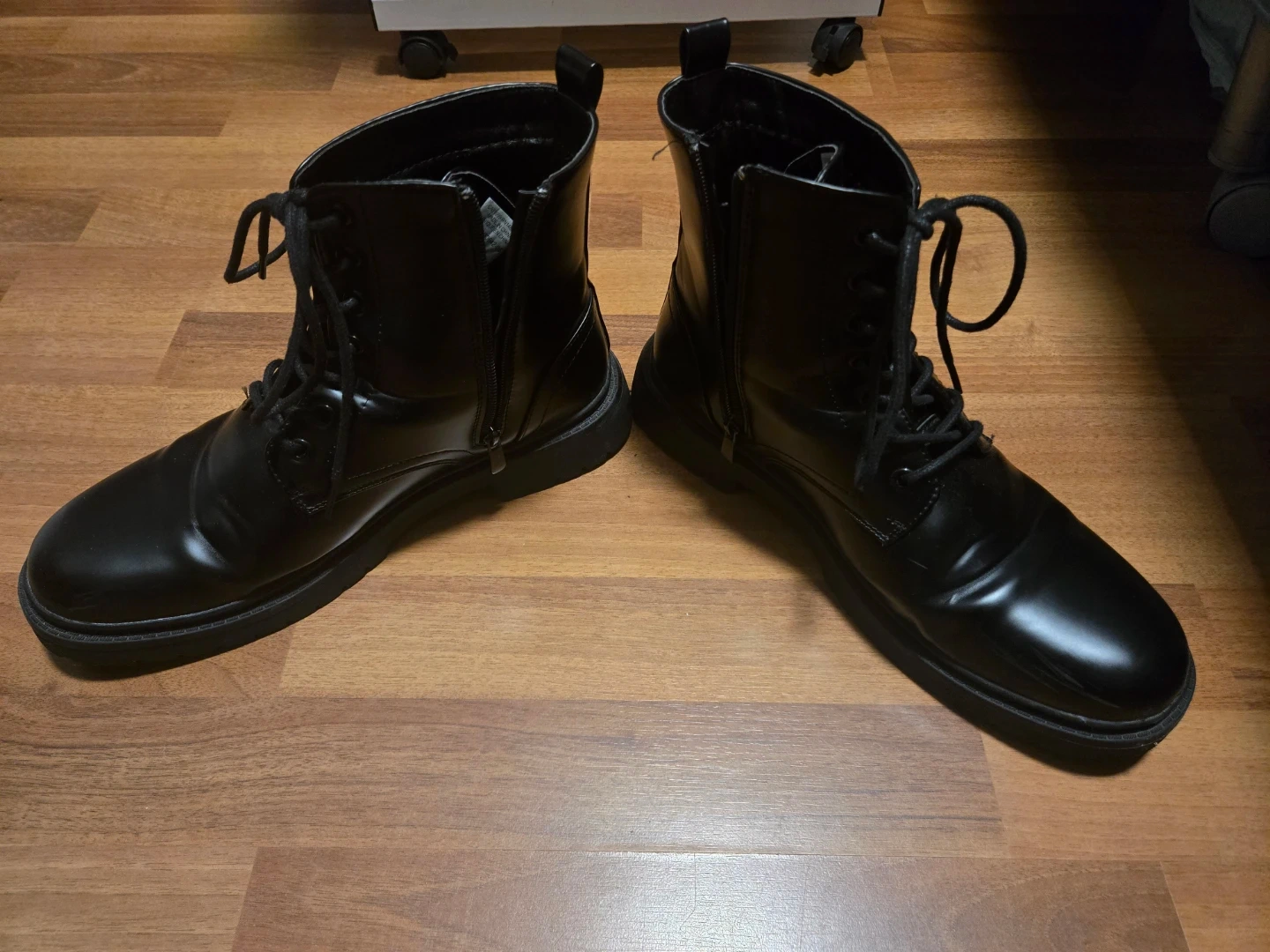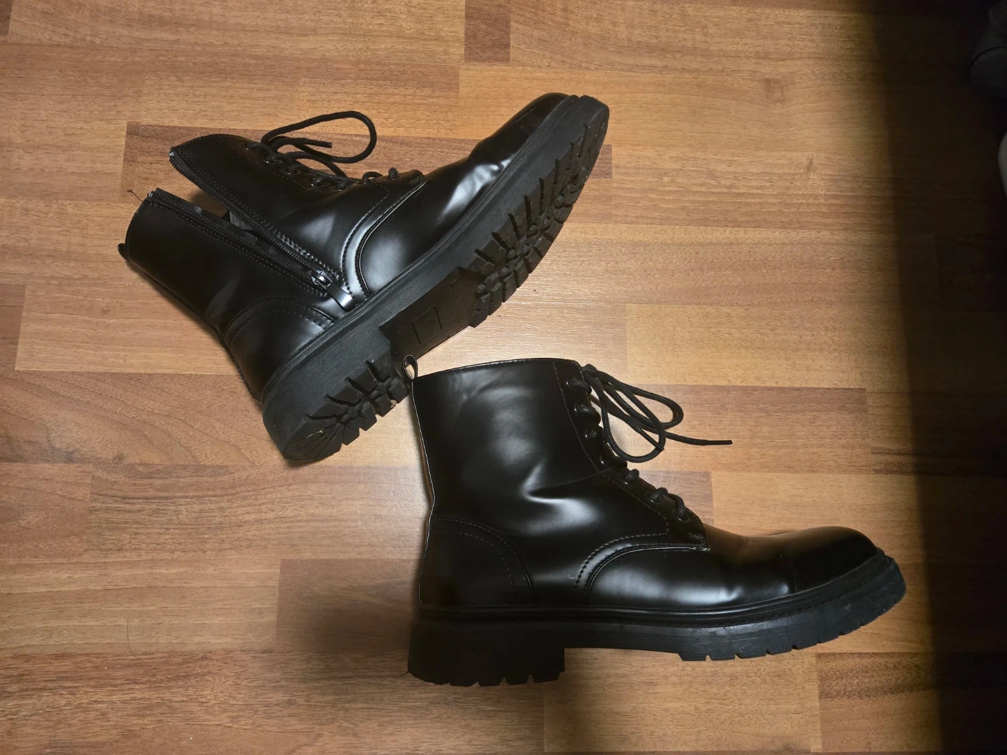 Selling a pair of black ankle boots from Ardene. They feature a lace-up design and a side zipper for easy wear. Great for adding a bit of edge to your look!
