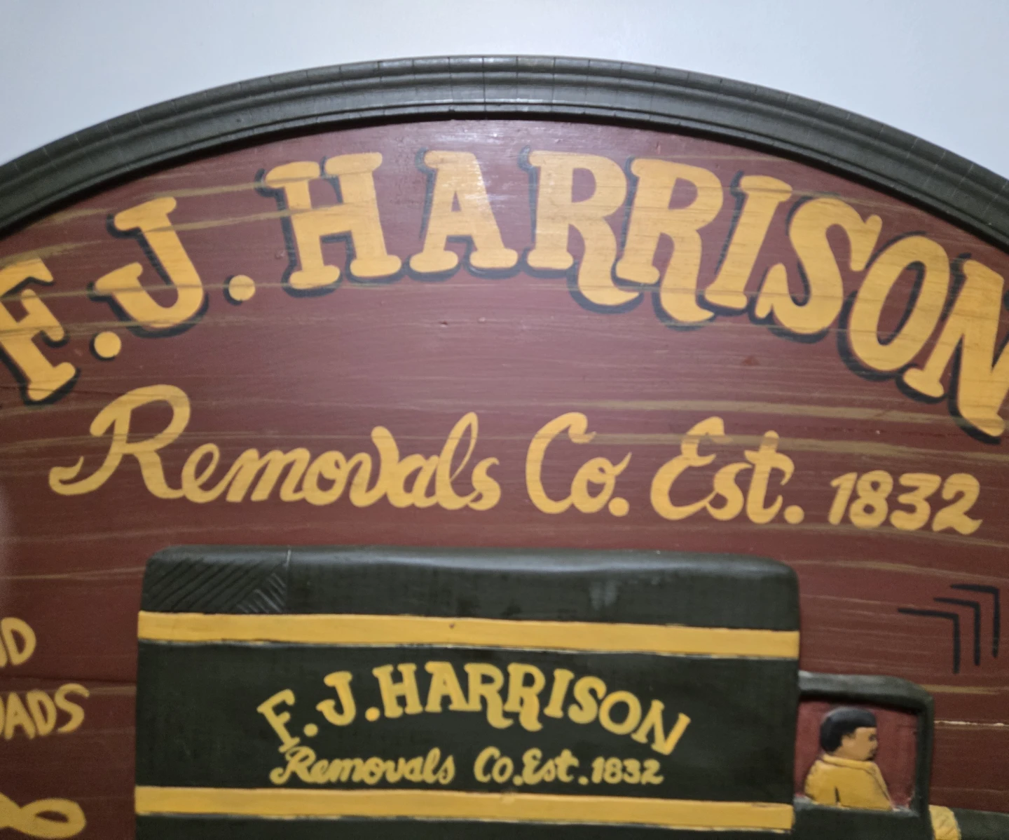 1 / 61 / 6Buy & SellVintage F.J Harrison Removals Rare Large Size.Vintage F.J Harrison Removals Rare Large Size.$55Vintage F.J Harrison Removals Co.Est.1832 Solid Wood Advertising Sign. Great Condition. RARE Large Unique Advertising Sign 36" x 24". WHERE TO MEETWendysView MapSELLERverifiedLarryPat Bayly Square1739 reviews0 chats·1 favorites·13 viewsSEND CHAT TO SELLERHi Larry! I’m interested in your listing.Hi Larry! I’m interested in your listing.Get the Karrot app to chatSign In to chat