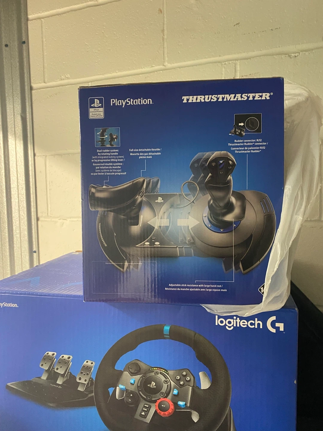 Selling a Thrustmaster flight stick and a Logitech G29 Driving Force racing wheel. Both are in great condition and come with their original boxes. Perfect for flight simulation and racing games!