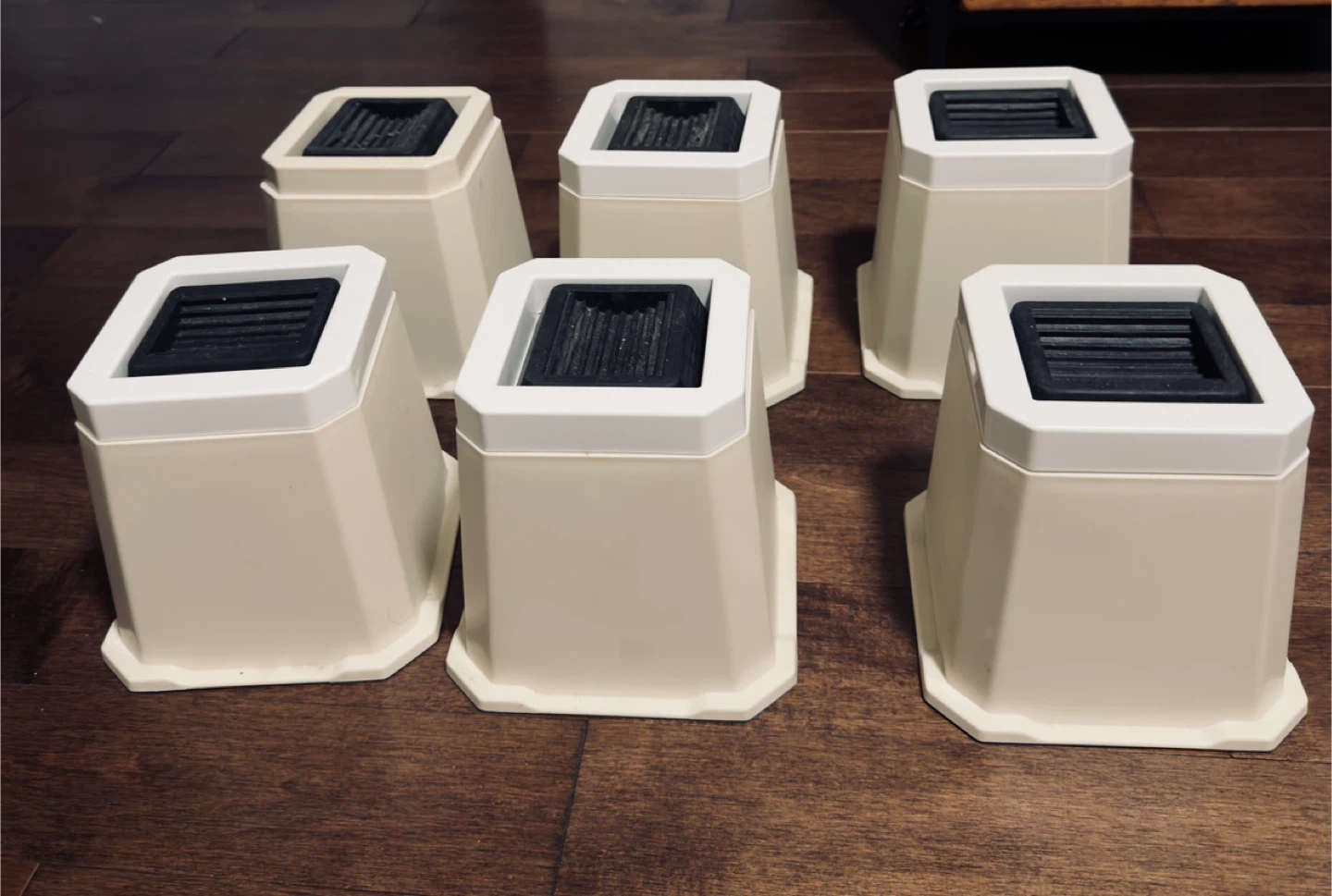 Lift your bed, sofa, or table 5 inches for extra storage. Easy to install, Fits most furniture legs. Durable and space-saving—perfect for any room! Pickup only. Reason for selling- Moving out