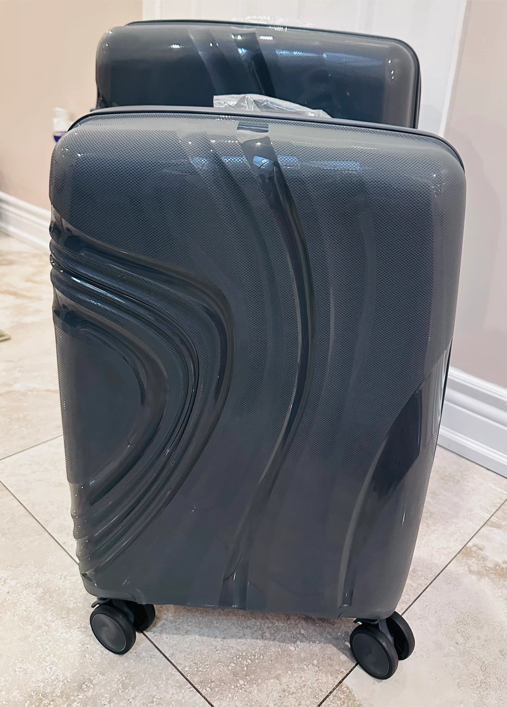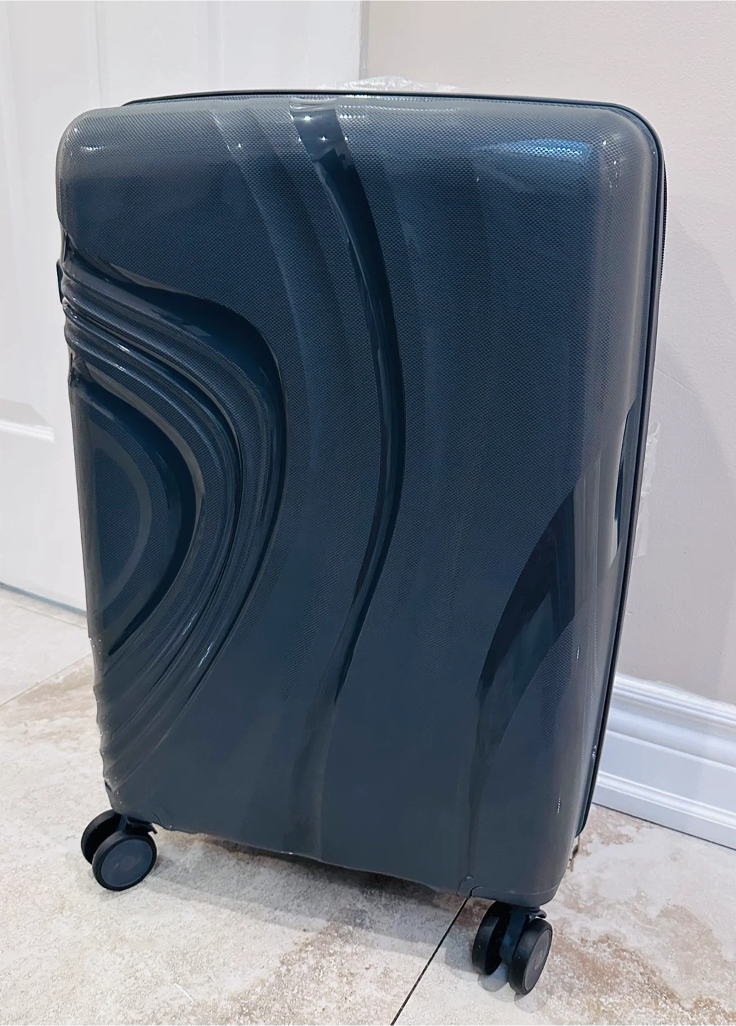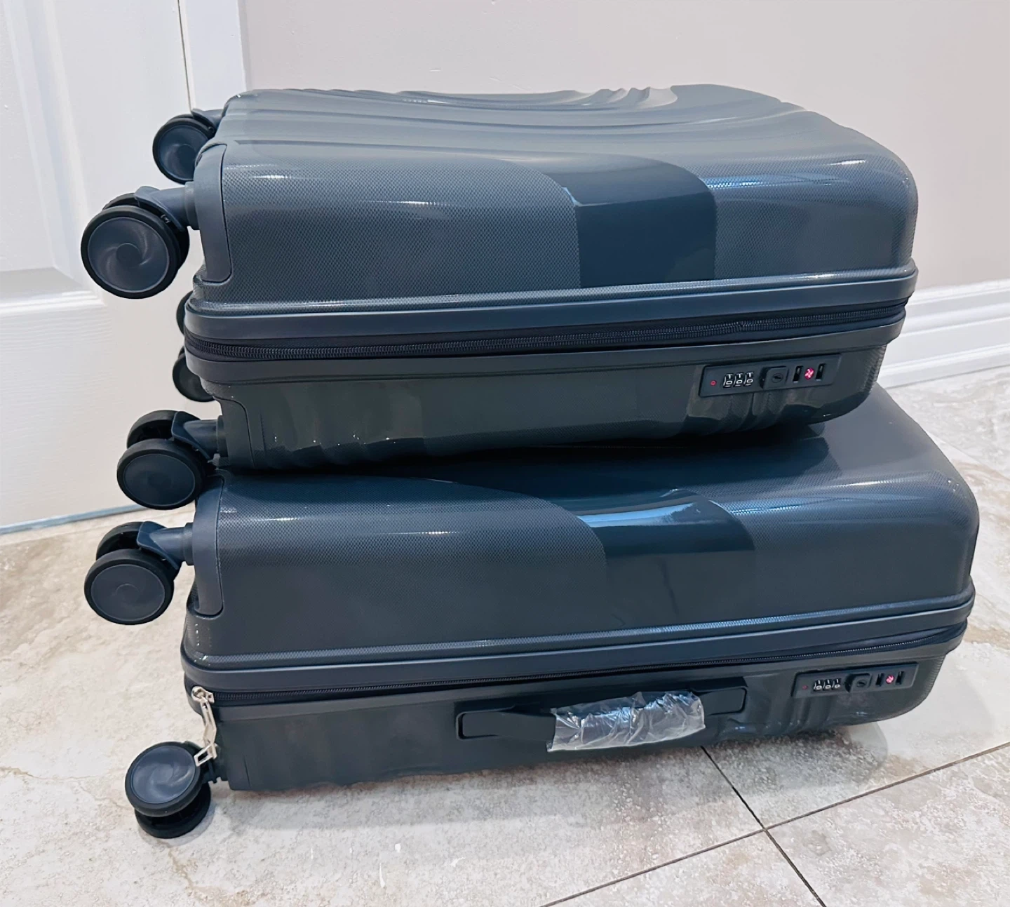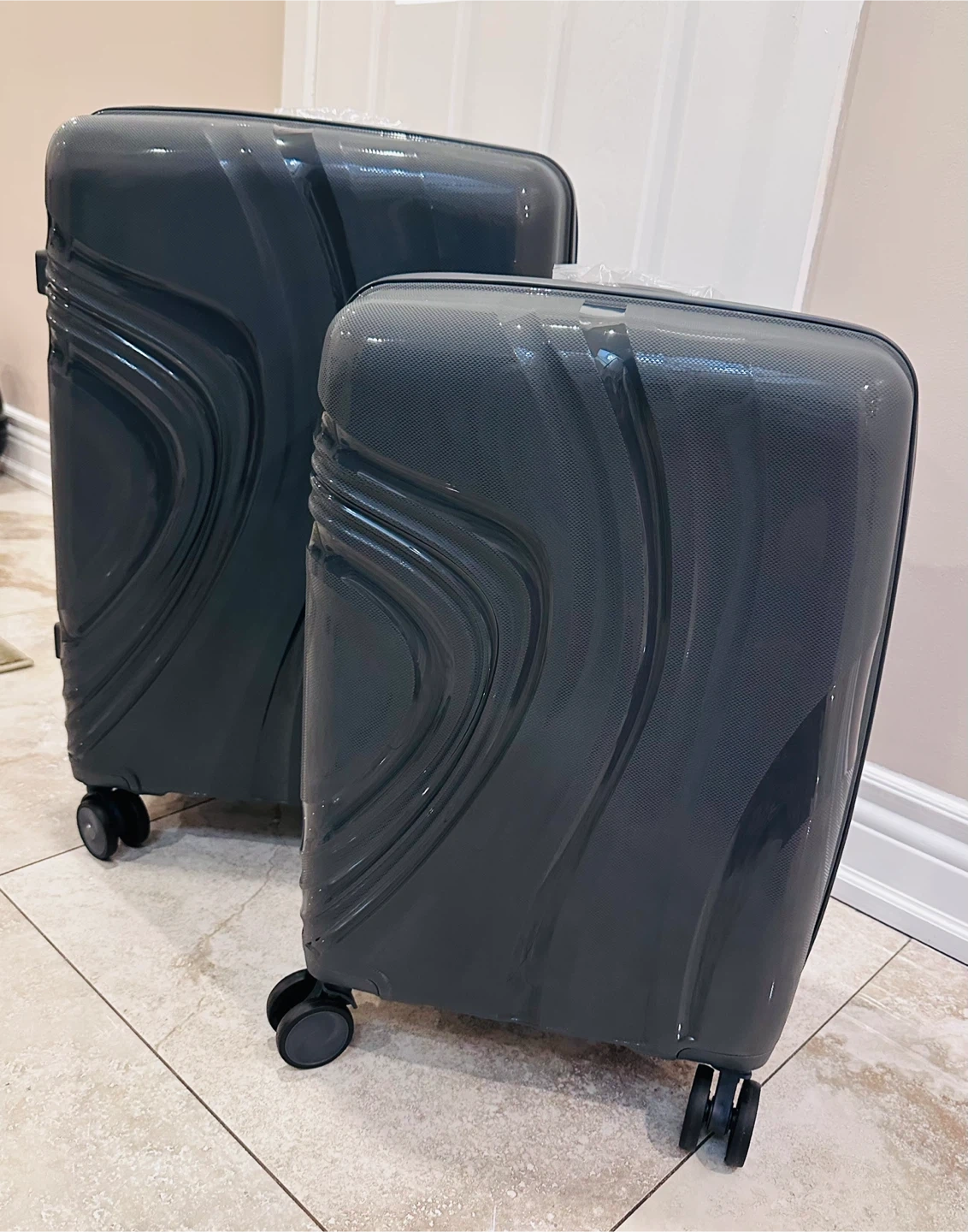 Selling a set of 3 hardside suitcases. They come in varying sizes and are perfect for all your travel needs! The set includes a small, medium, and large suitcase. The color is black. light green and grey.size 38,24,20