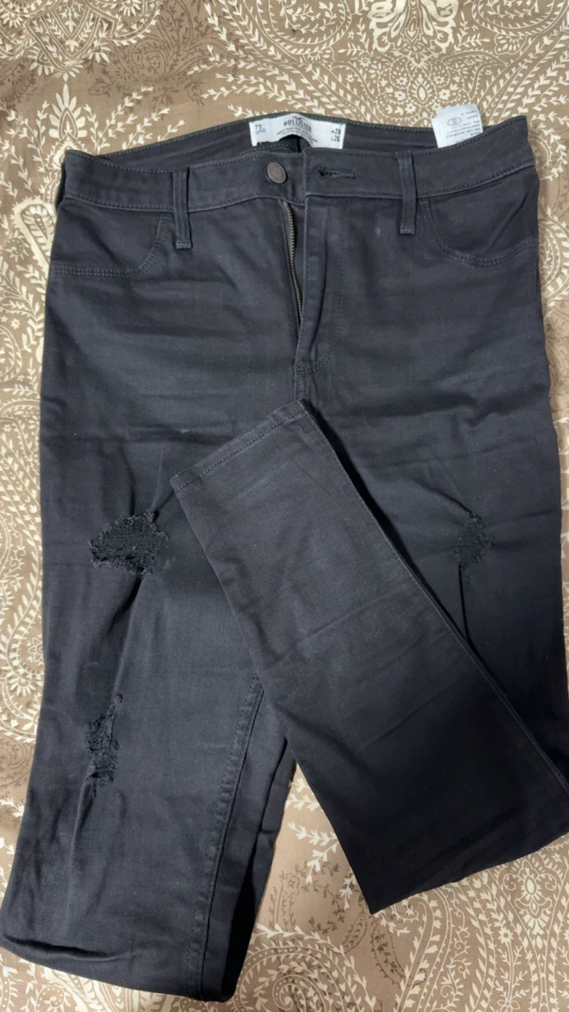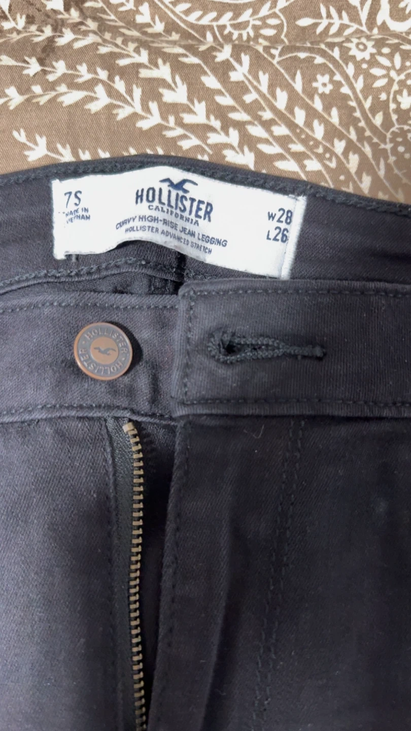 Selling a pair of Hollister Curvy High-Rise Jean Leggings in black. They are a size 7S (28x26) They have some distressed detailing.
