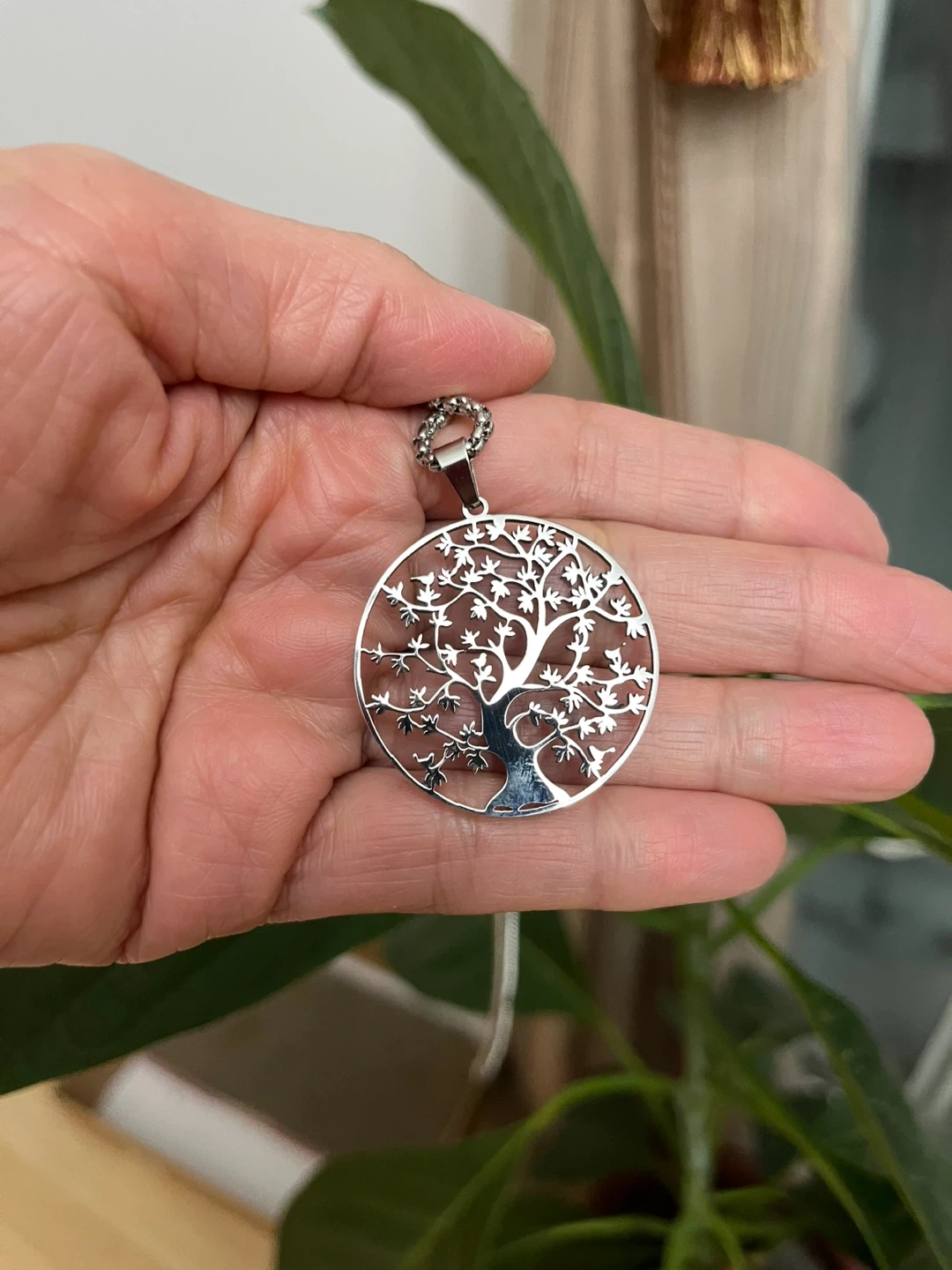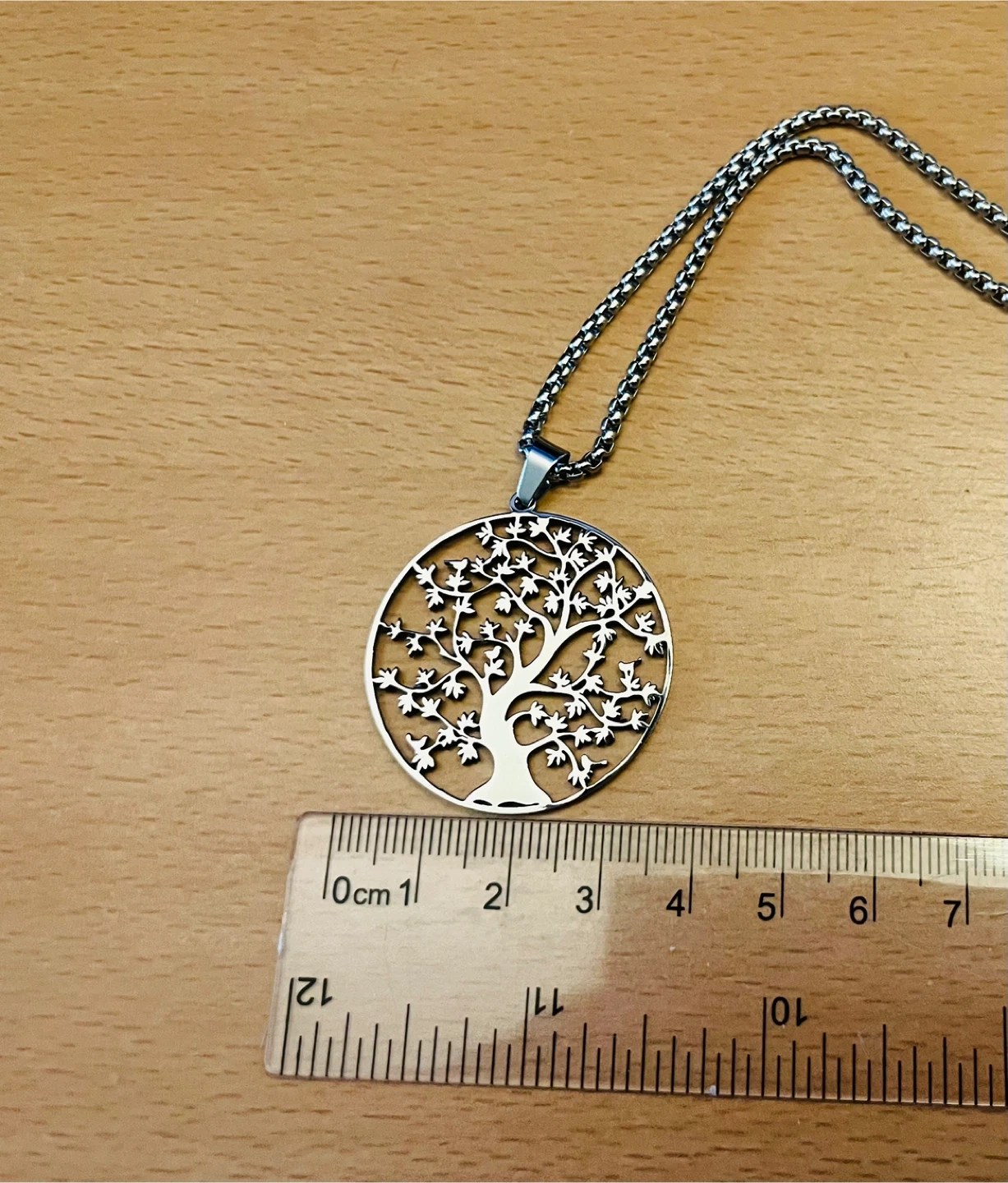 Selling a lovely silver-tone necklace featuring a Tree of Life pendant. The pendant measures approximately 3.5cm in diameter, and the chain is about 29cm long.