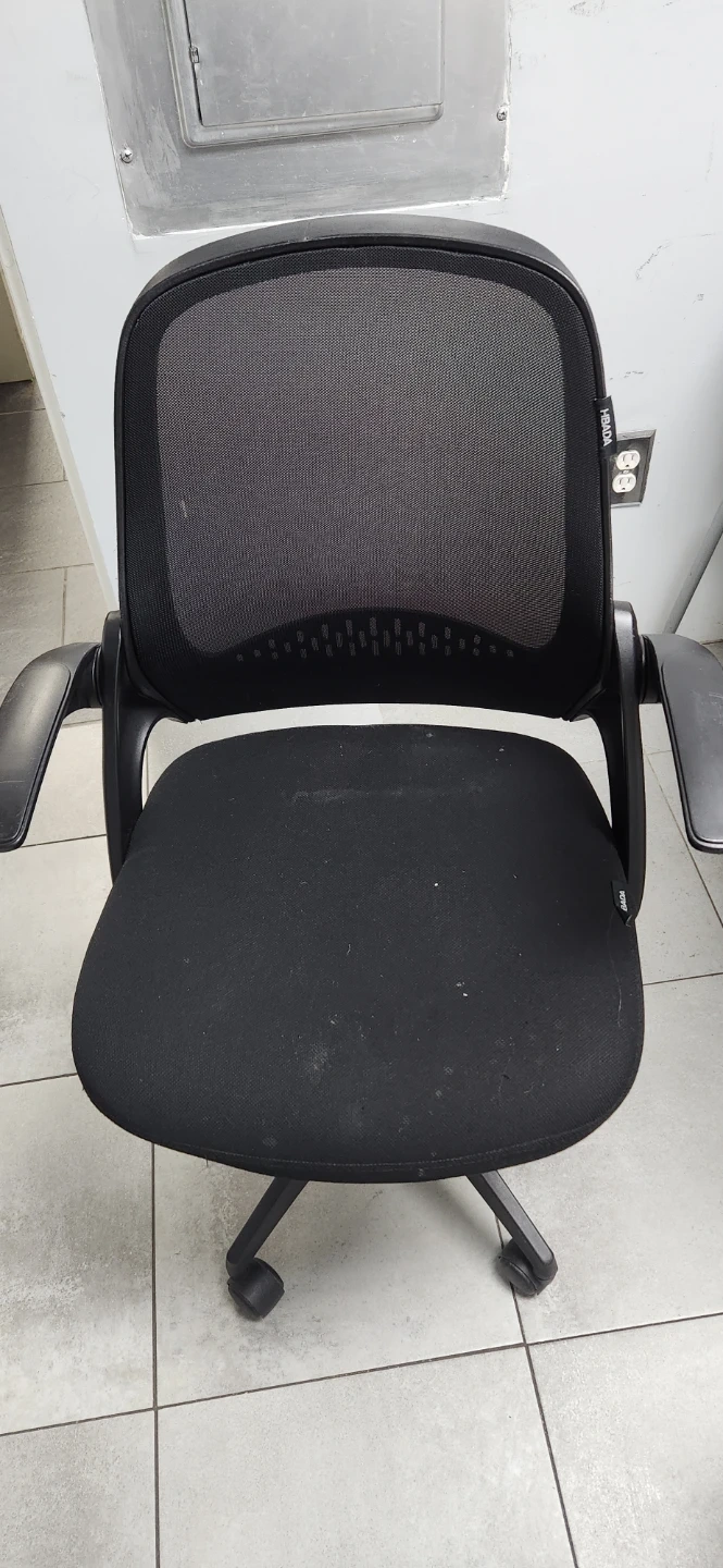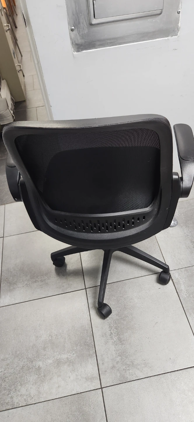 Selling an office chair with a mesh back! It's in great condition and ready for a new workspace. The mesh back provides great support and breathability for those long work sessions. Perfect for a home office or a professional setting!