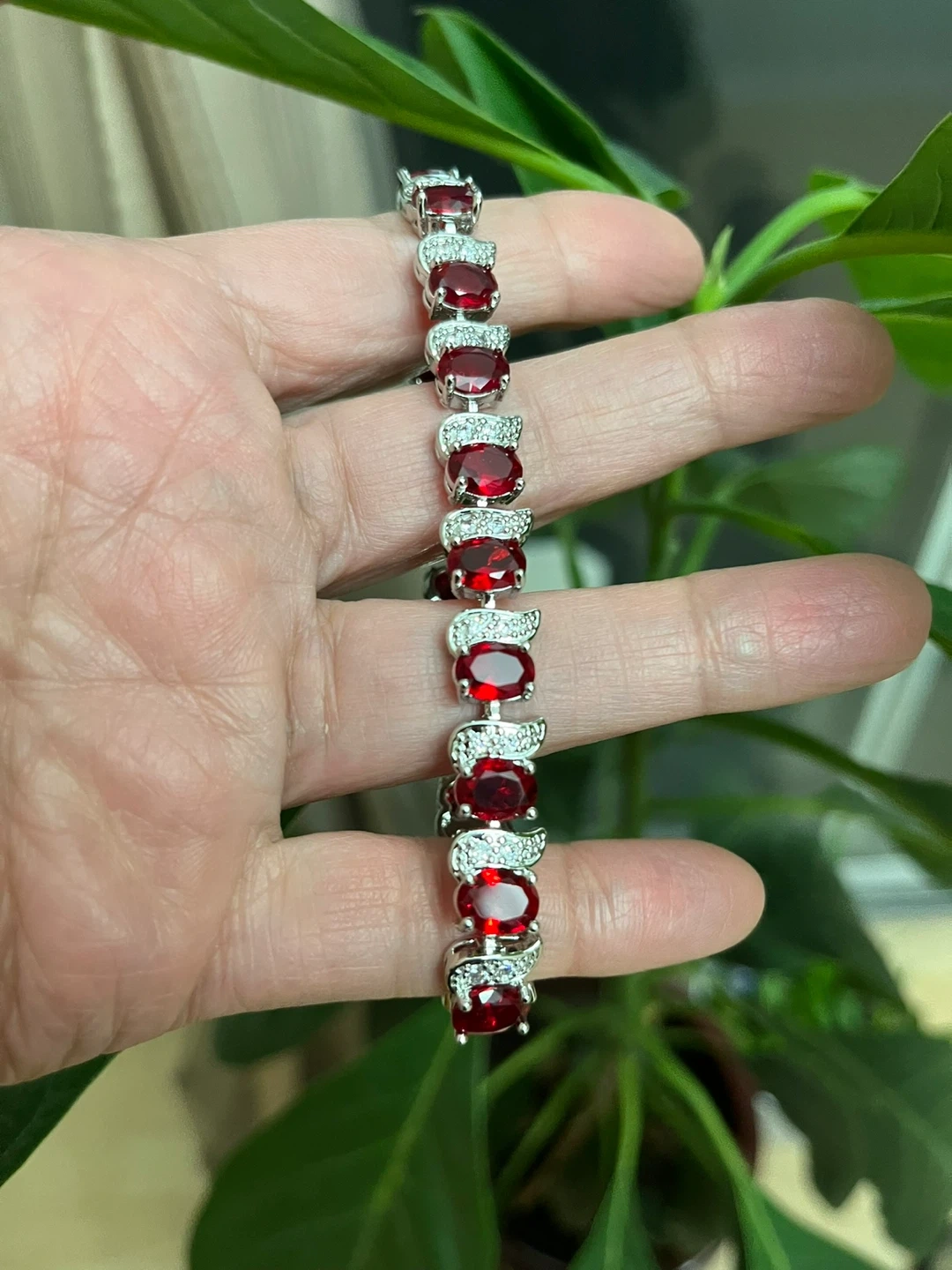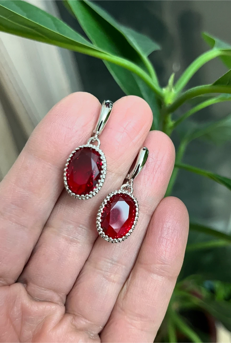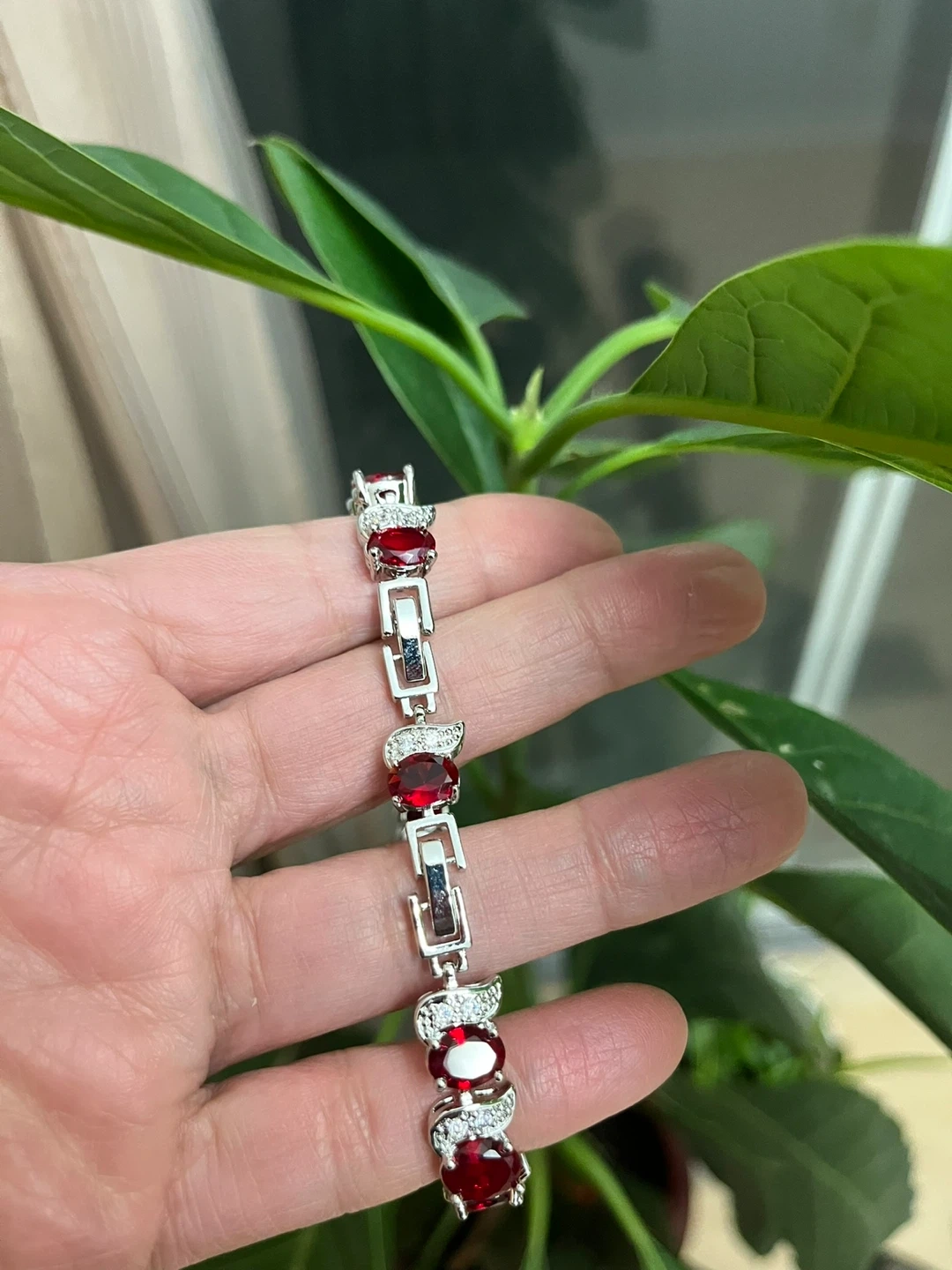 Selling a beautiful jewellery set featuring red gemstones. It includes a necklace, earrings, and a bracelet. Comes in a box, perfect as a gift!