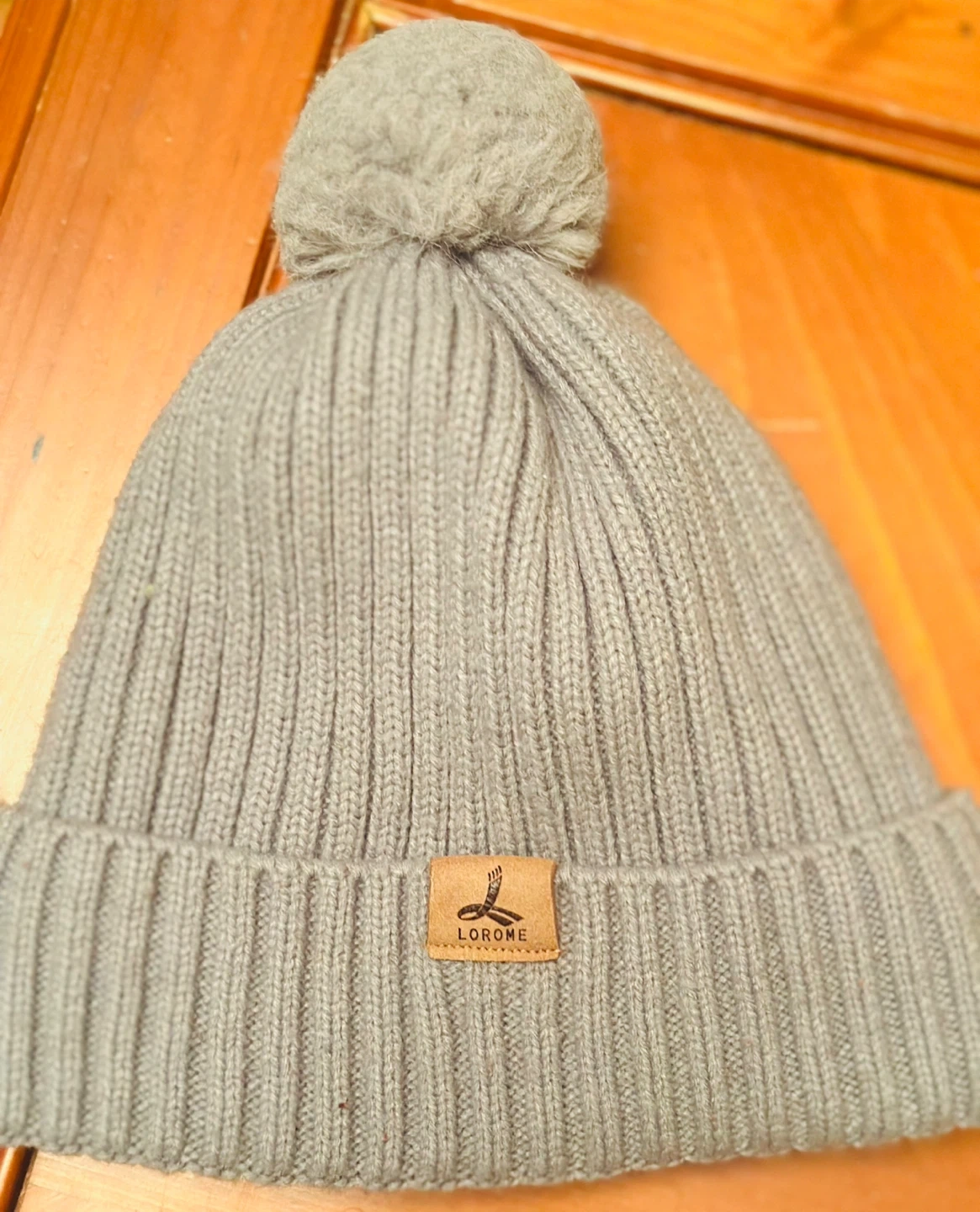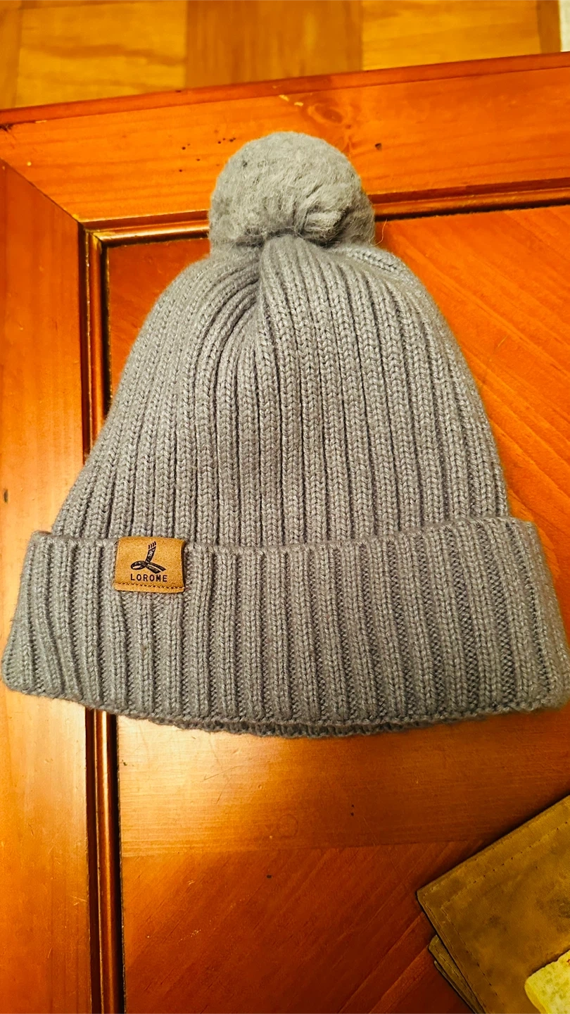 Cozy up with this Lorome knit beanie! It's a stylish gray color and features a fun pom pom on top. The inside is lined for extra warmth and comfort, perfect for chilly days