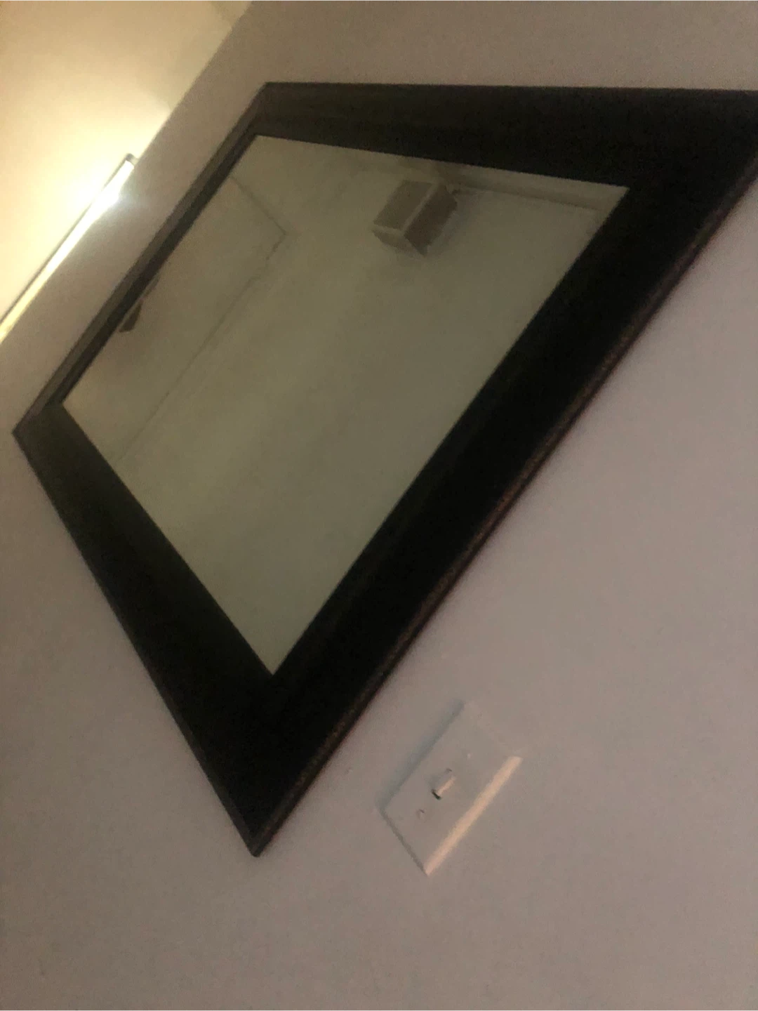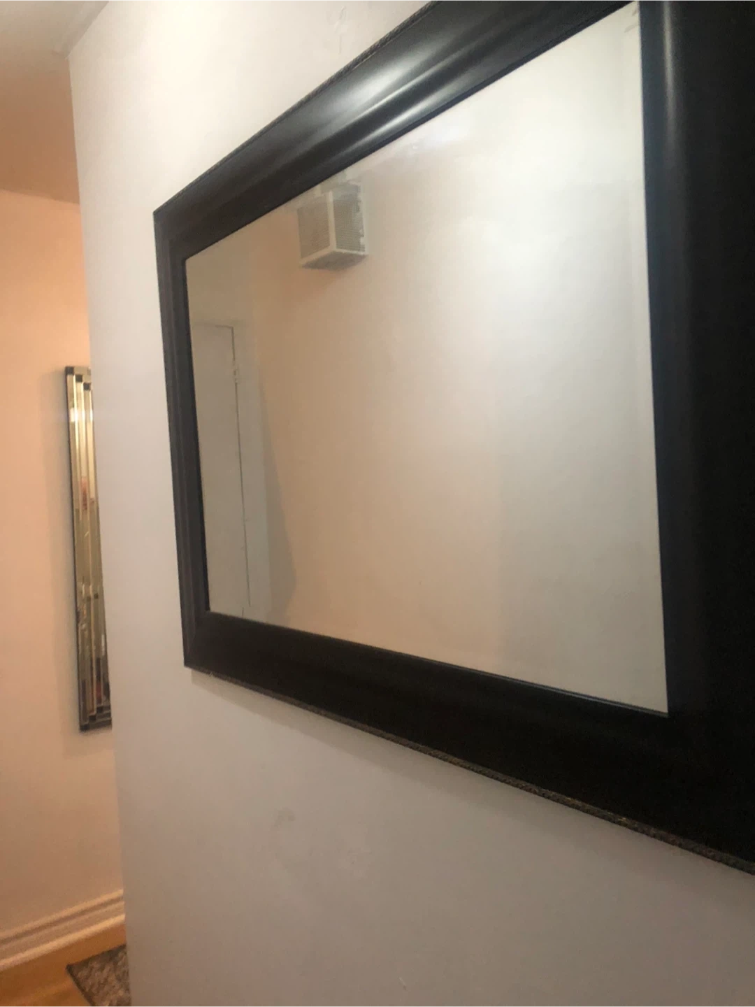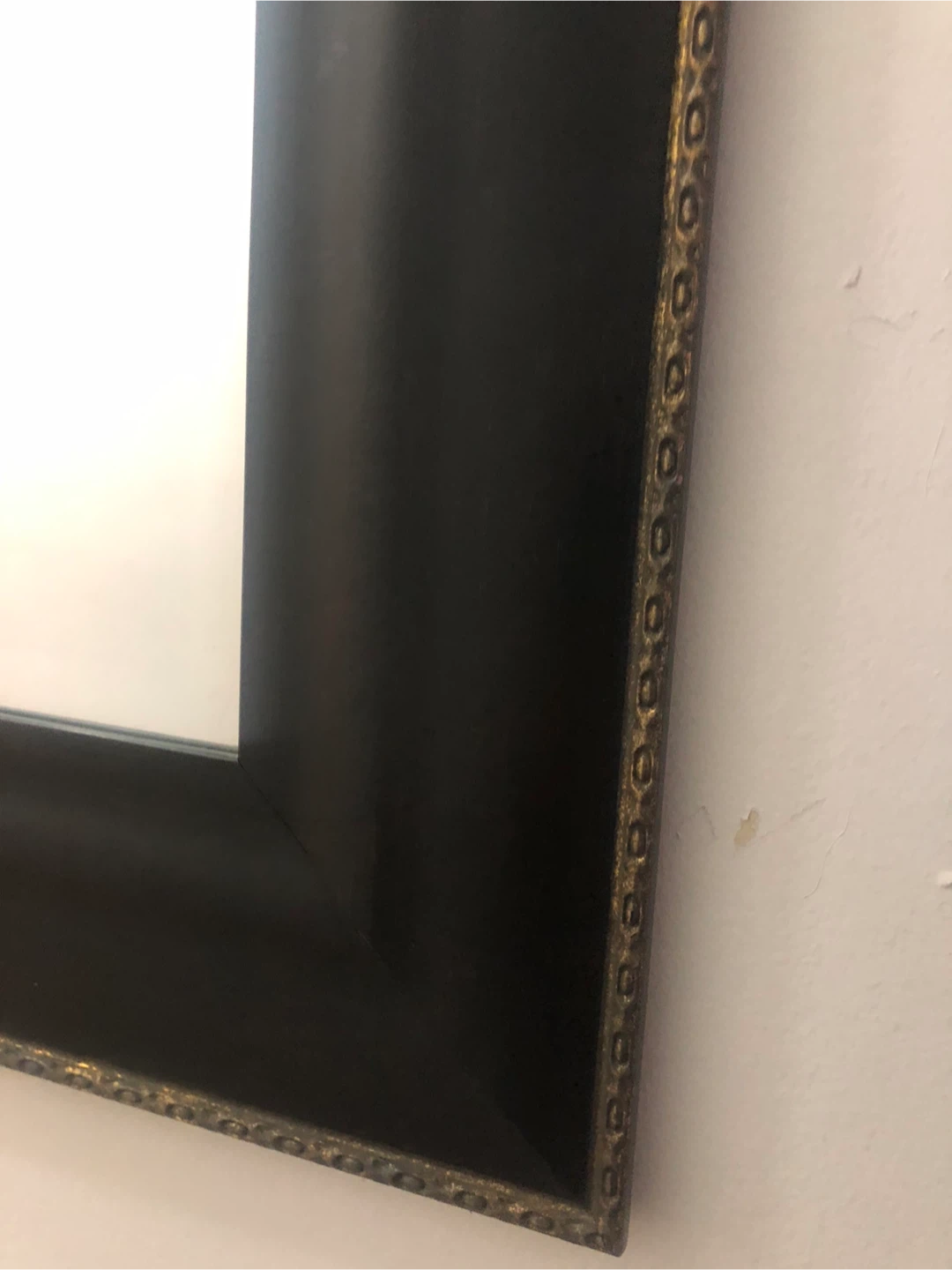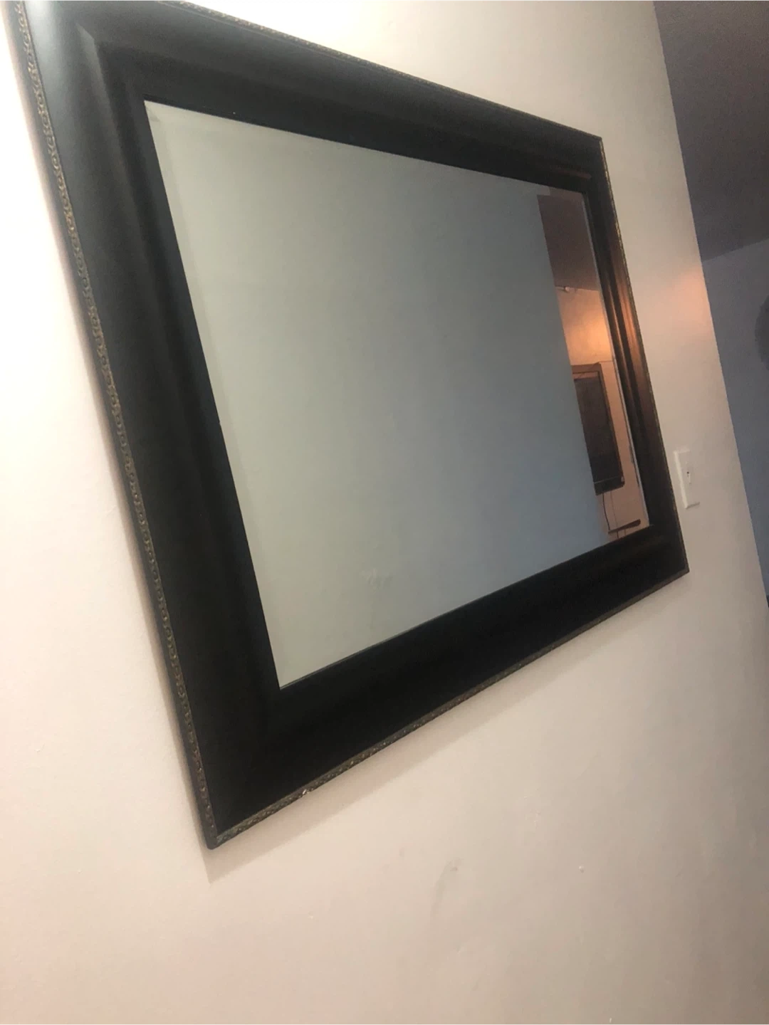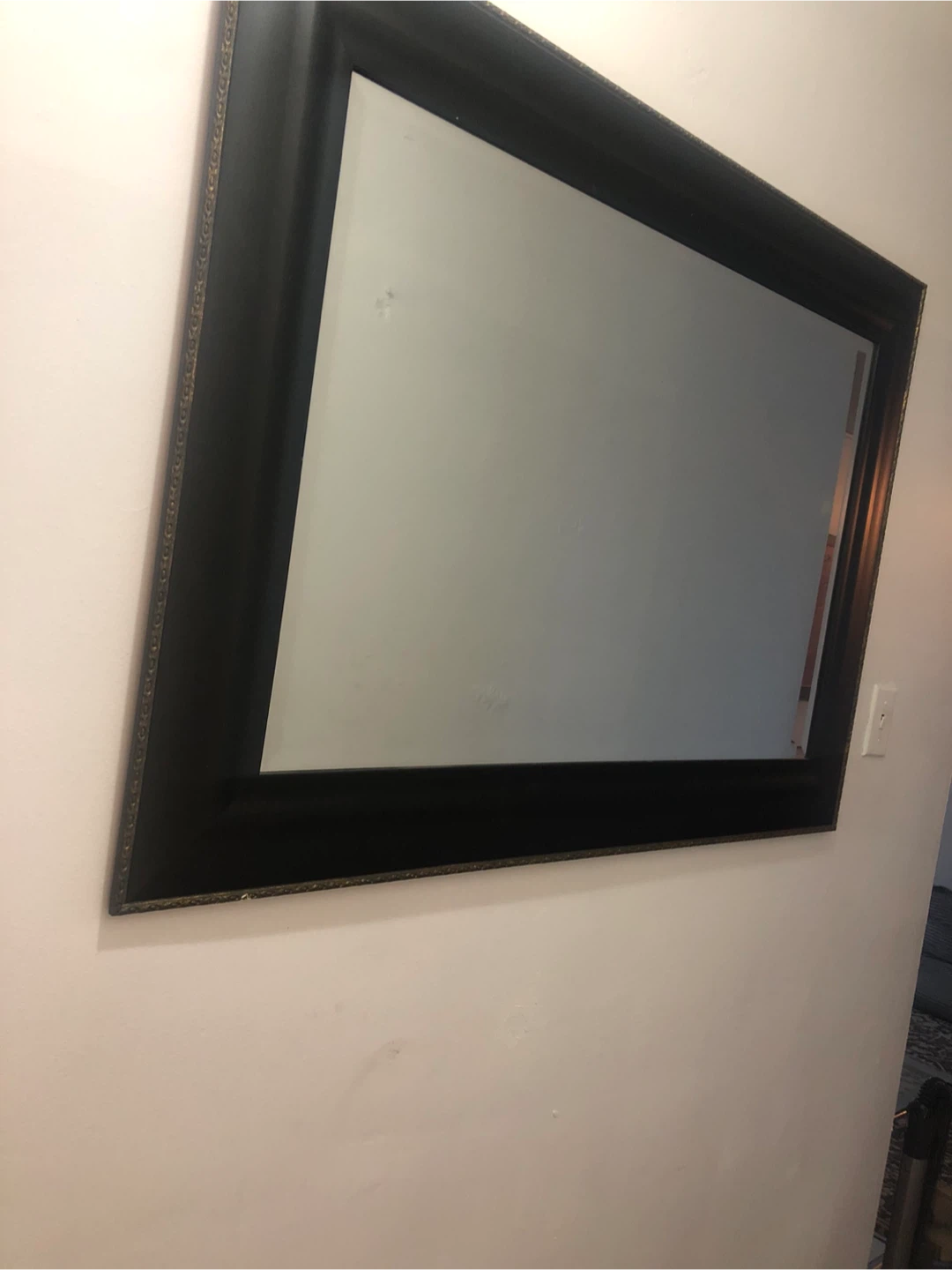 Selling a wall mirror with a black frame. It's in good condition and ready to be hung up in your home
