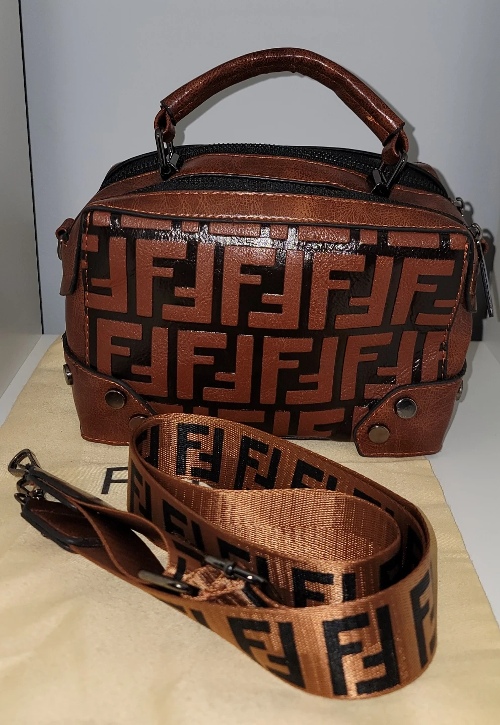 Stylish brown handbag featuring a unique pattern and a convenient shoulder strap. Perfect for adding a touch of flair to any outfit!