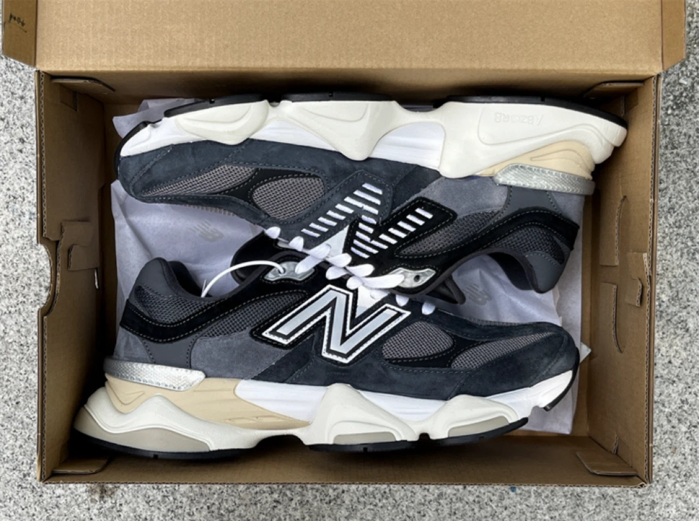 Selling New Balance 9060 black phantom in a stylish gray and black colorway! These shoes are in great condition and come with the original box. Perfect for adding a touch of sporty flair to your everyday look