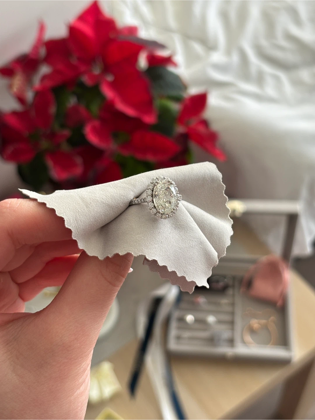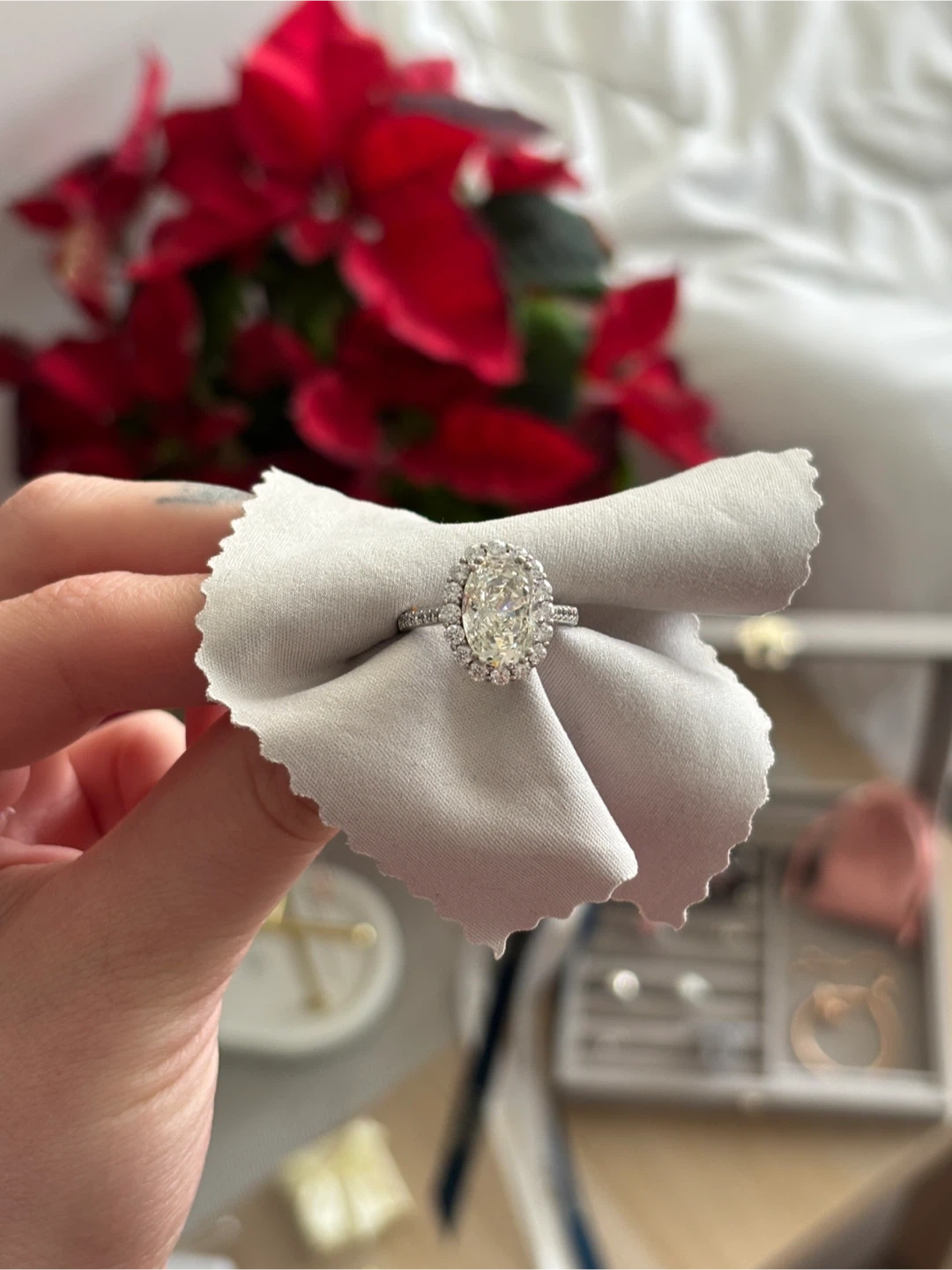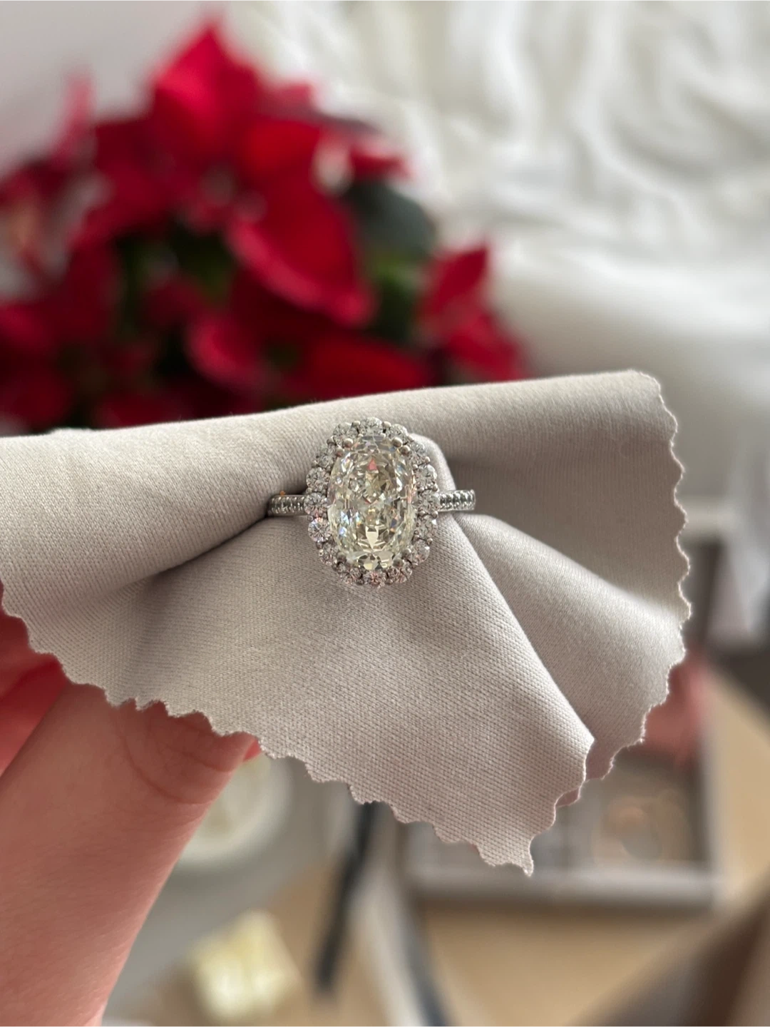 Selling a beautiful oval halo moissanite ring. It's in great condition, size 6,5-7, silver 925.