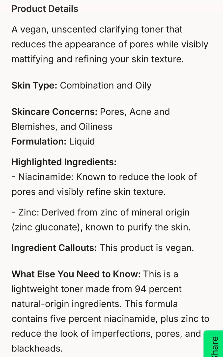 It's a vegan, unscented toner that helps reduce the appearance of pores and visibly mattifies and refines your skin texture.