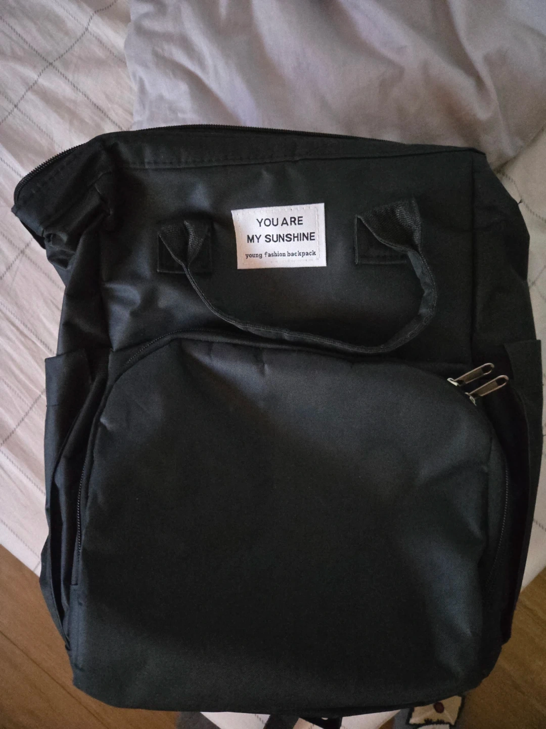 This is a black Young Fashion Backpack, perfect for everyday use! It features multiple compartments and a sturdy design to keep your belongings organized and secure