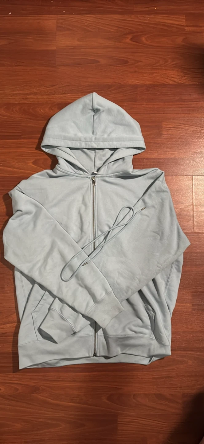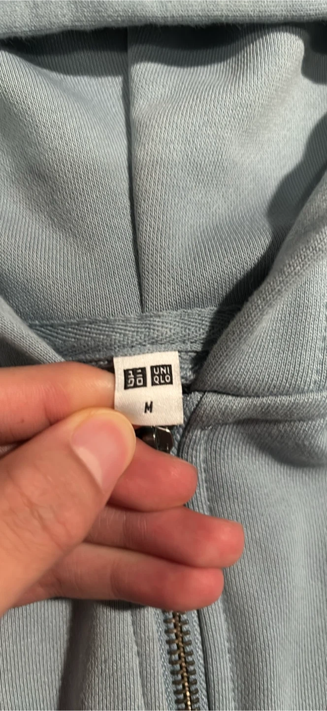 Selling a Uniqlo full-zip hoodie in a lovely light blue! It's a size medium and in great condition. Really comfortable