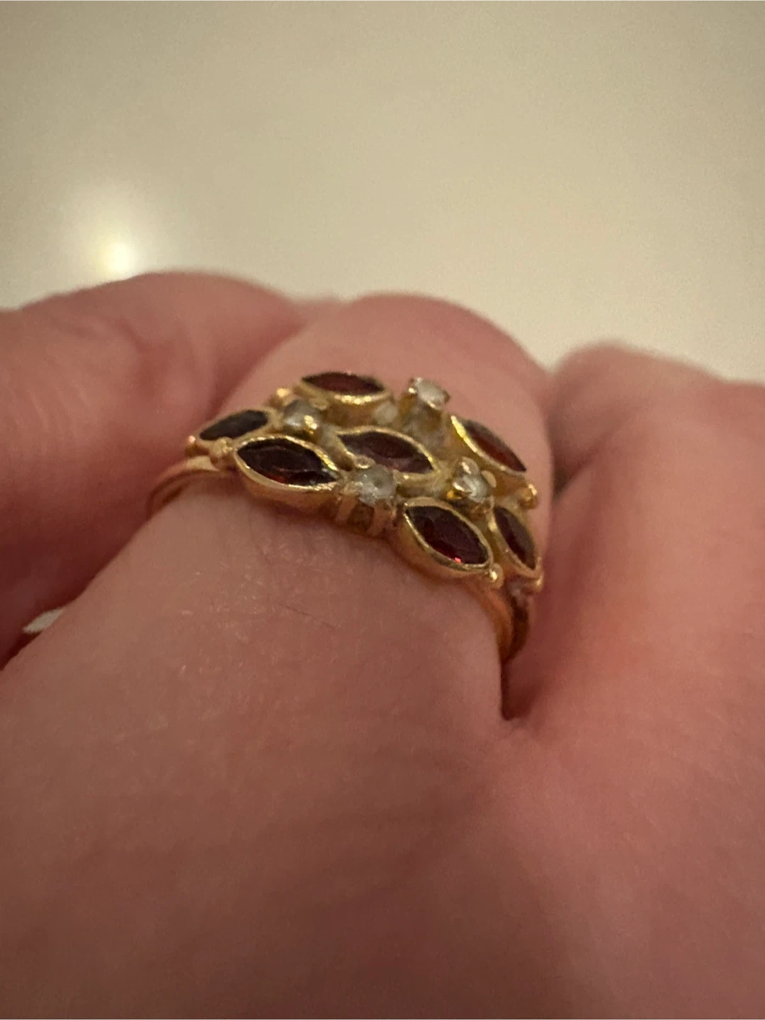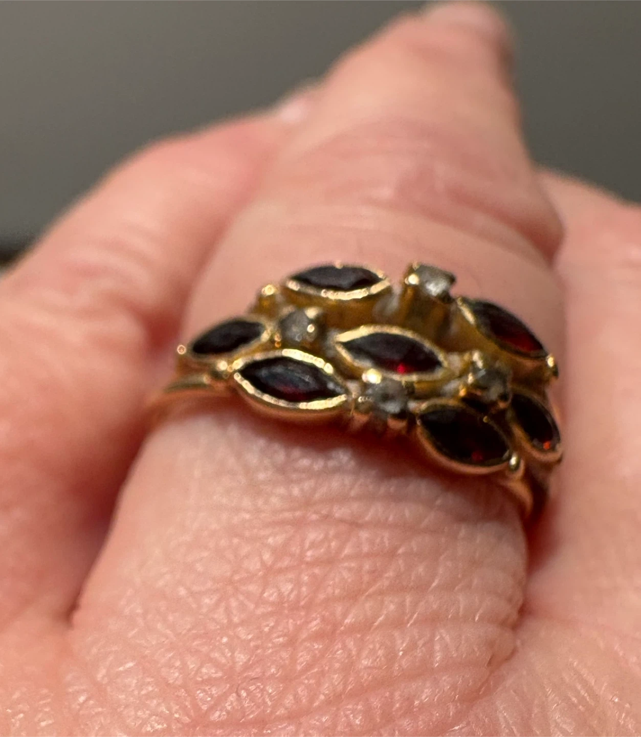 Vintage EU 19.2 K Gold, Garnet & Diamond Ring 7 - 7.5