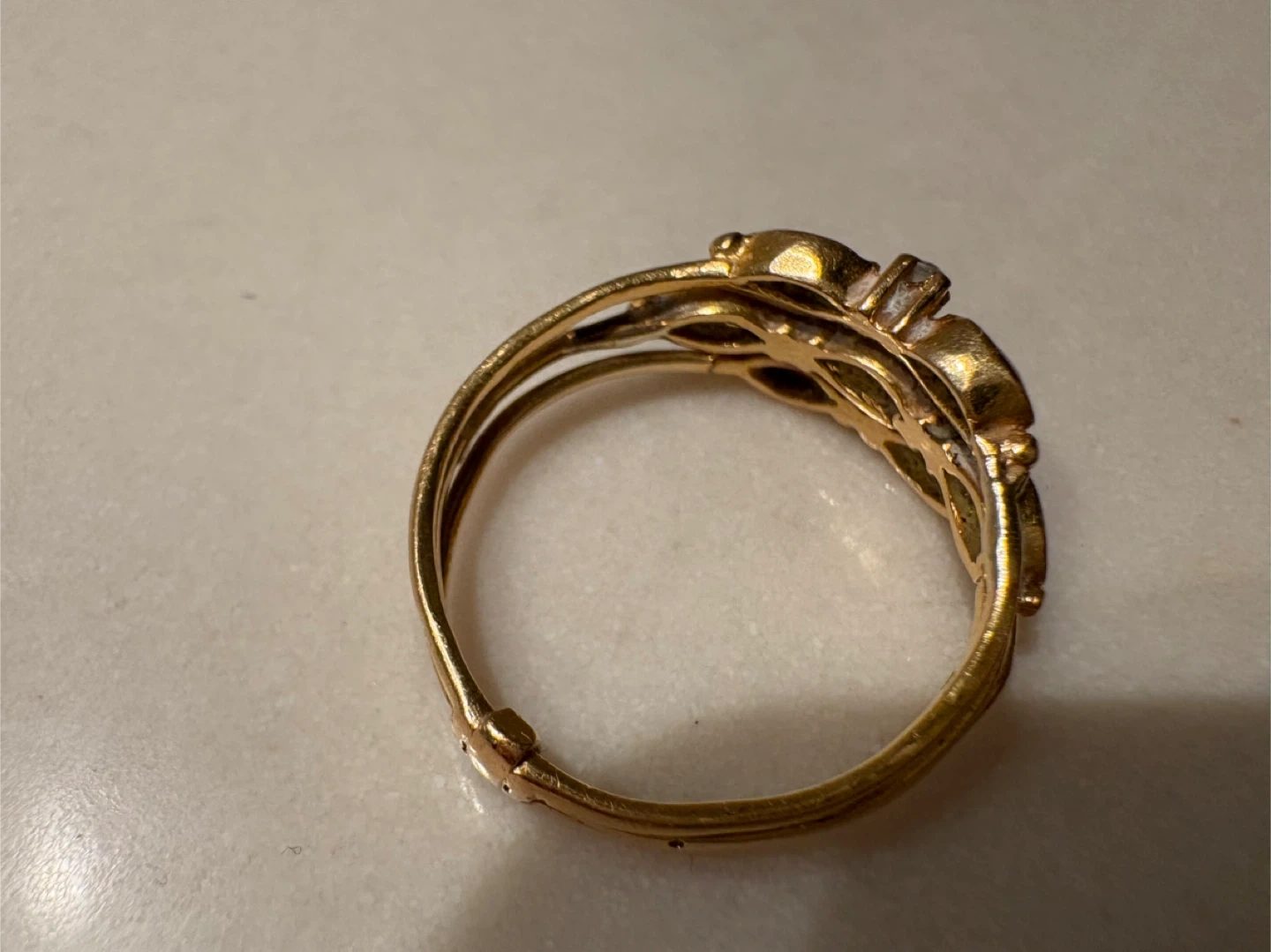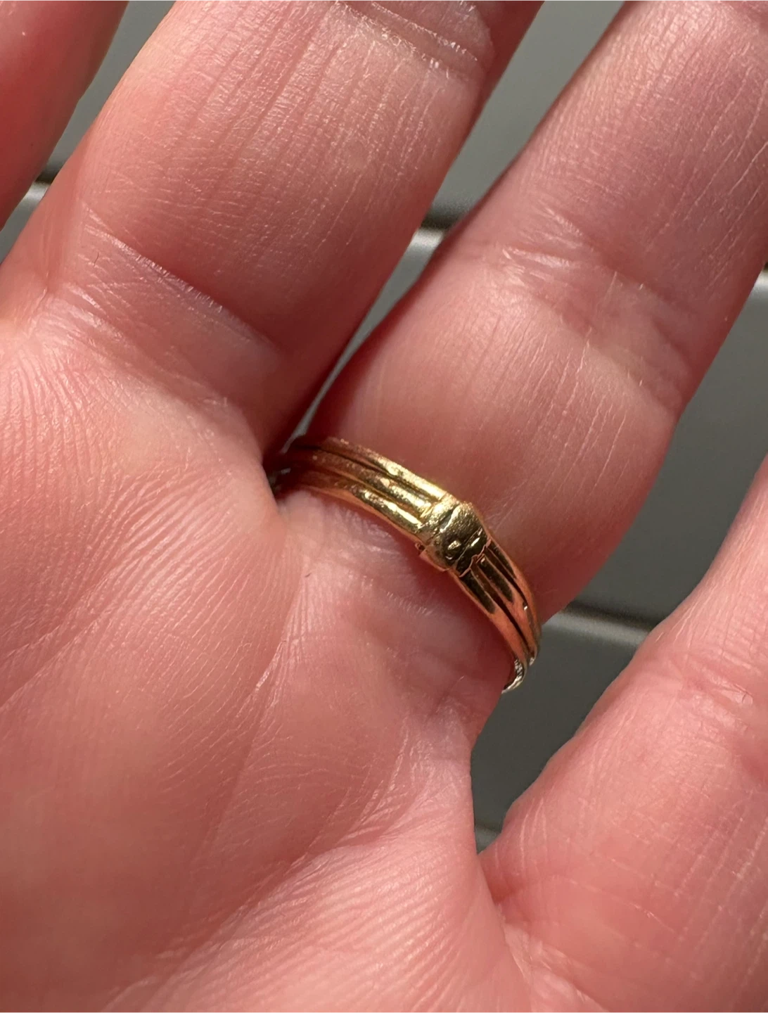The ring can easily be resized by the buyer or separated into three dainty rings!