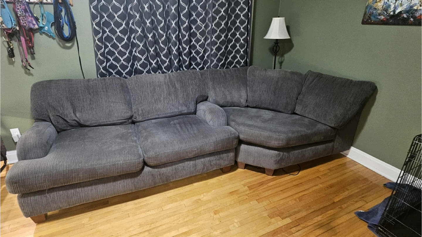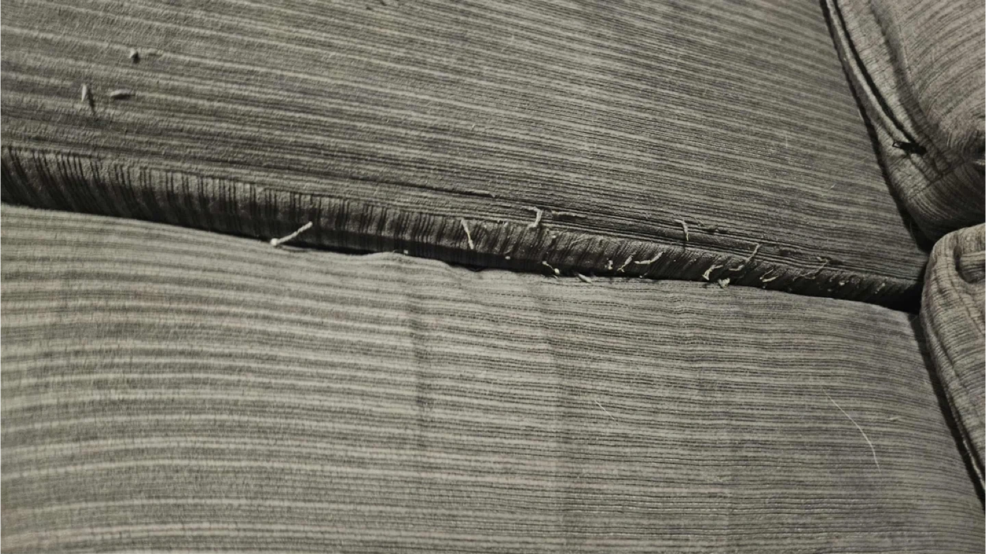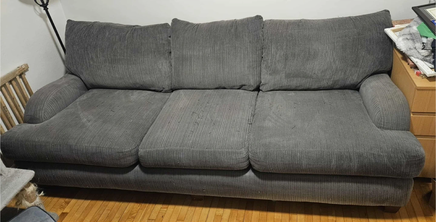 Has been vacuumed and cleaned recently, still has some pet hair that we couldn’t get out of the black base fabric.