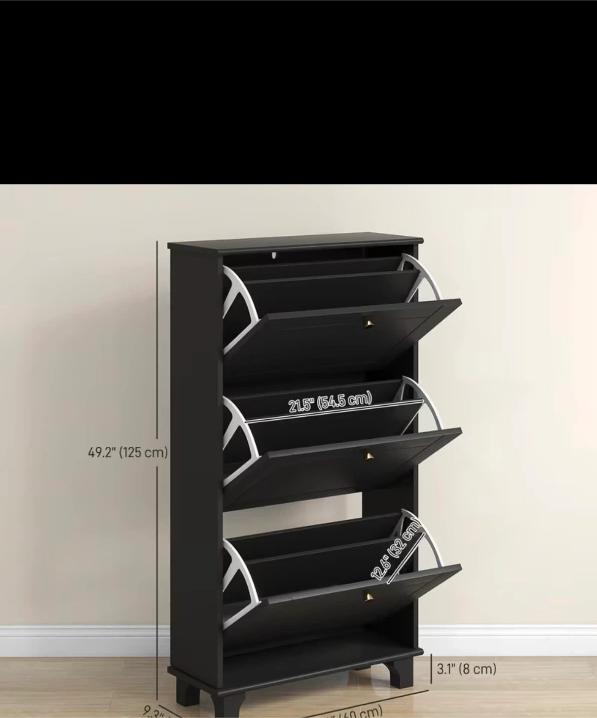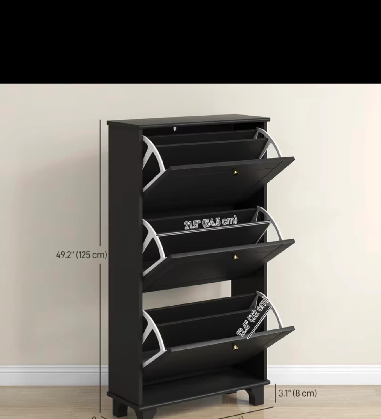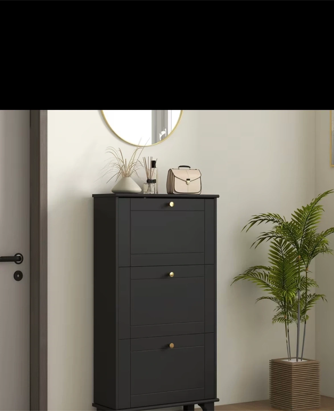 This black shoe cabinet is perfect for keeping your entryway tidy! It features adjustable shelves to accommodate different shoe sizes and types, even ankle boots and high heels. The interior adjustable divider is removable for extra flexibility.