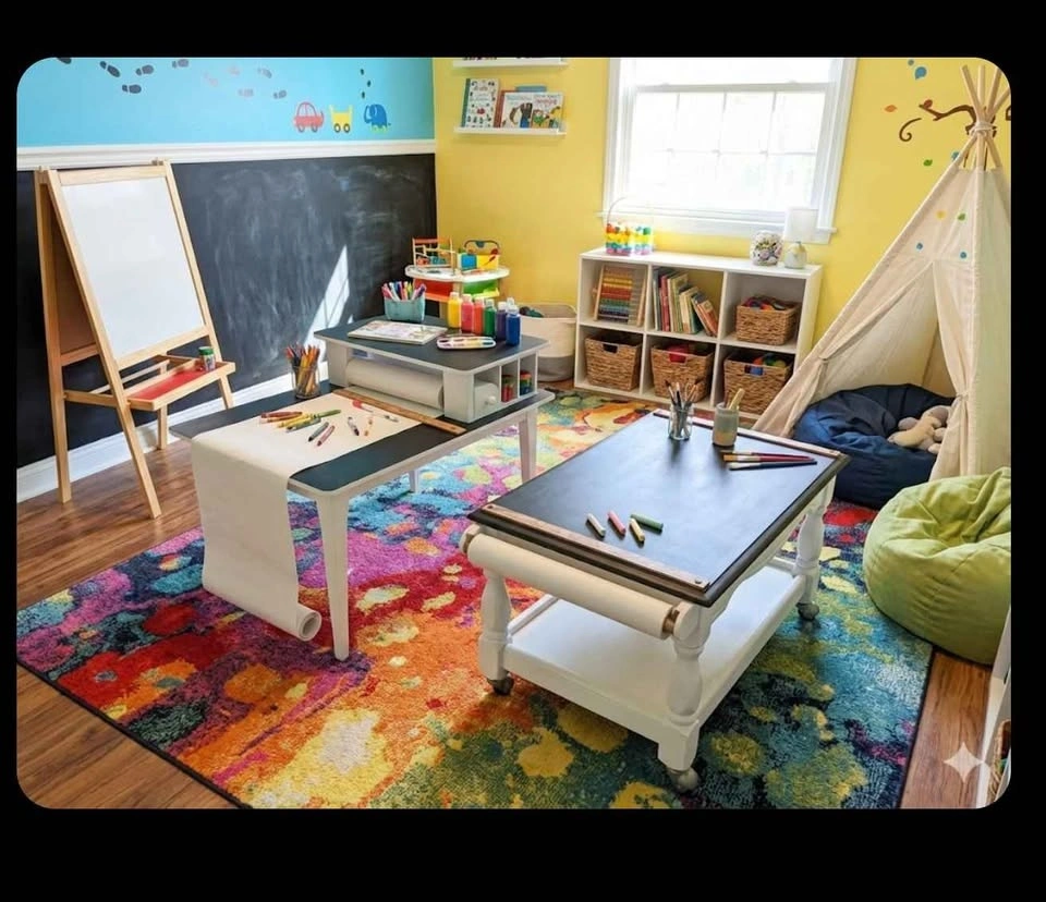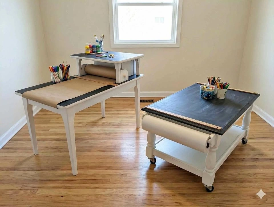 Elevate your playroom with these stunning, custom-built art tables! These aren't your average plastic tables; they are solid, furniture-grade pieces redesigned specifically for creativity.
