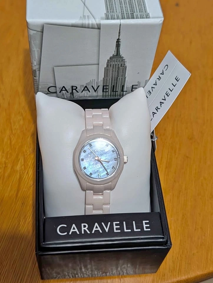 Selling a gorgeous, brand new in box Caravelle New York women's watch. This has never been worn and still sits on the original pillow in the box.