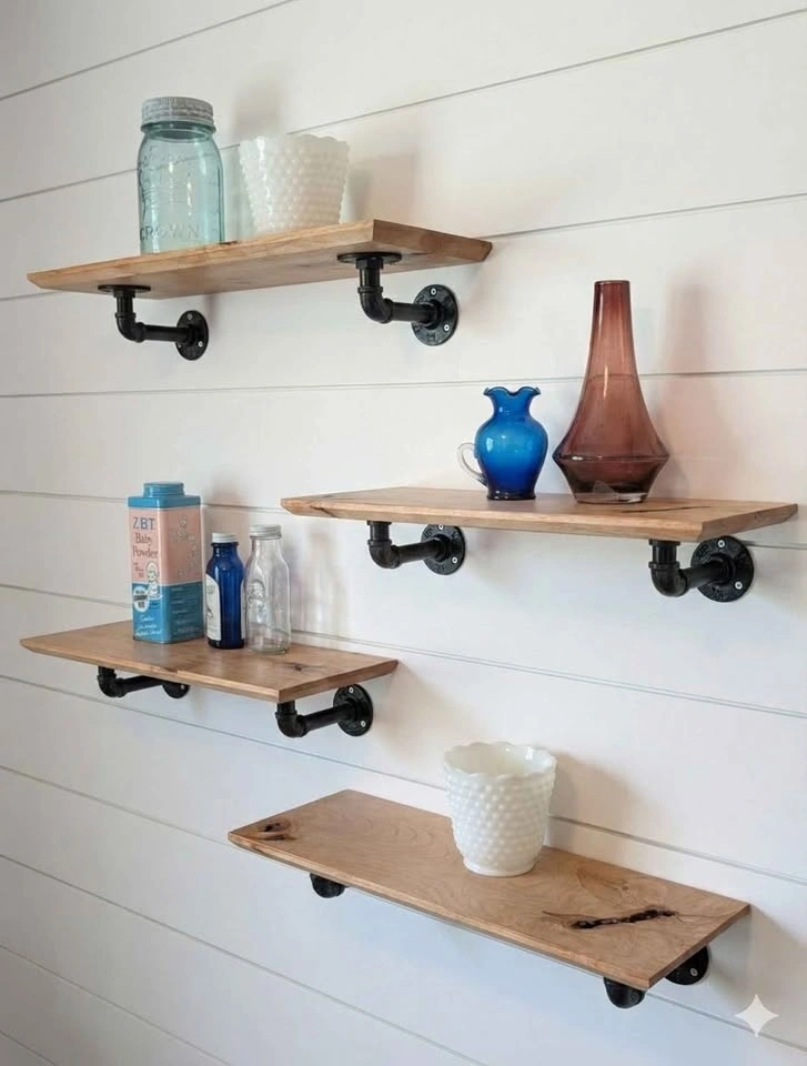 Unique Live-Character Maple Shelves + Industrial Hardware