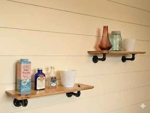 Industrial Look: Comes with sturdy black pipe brackets.