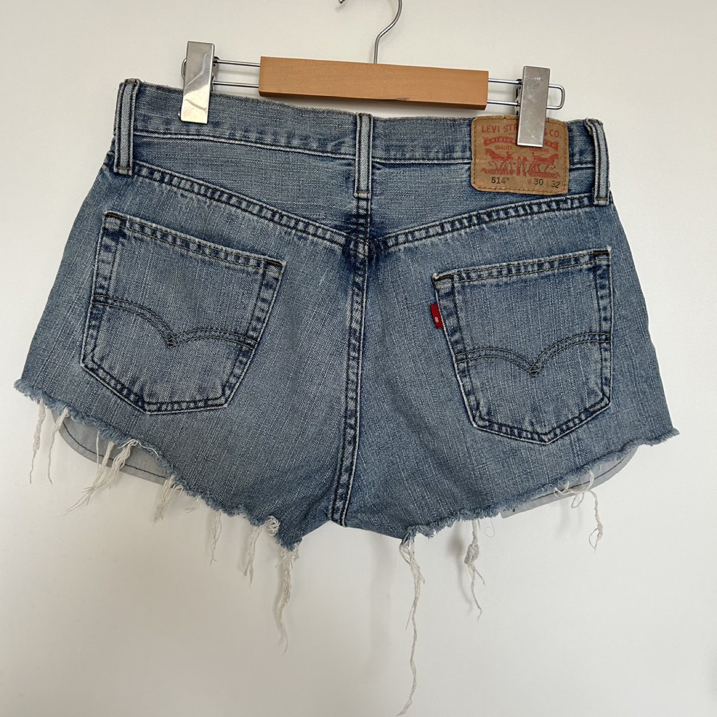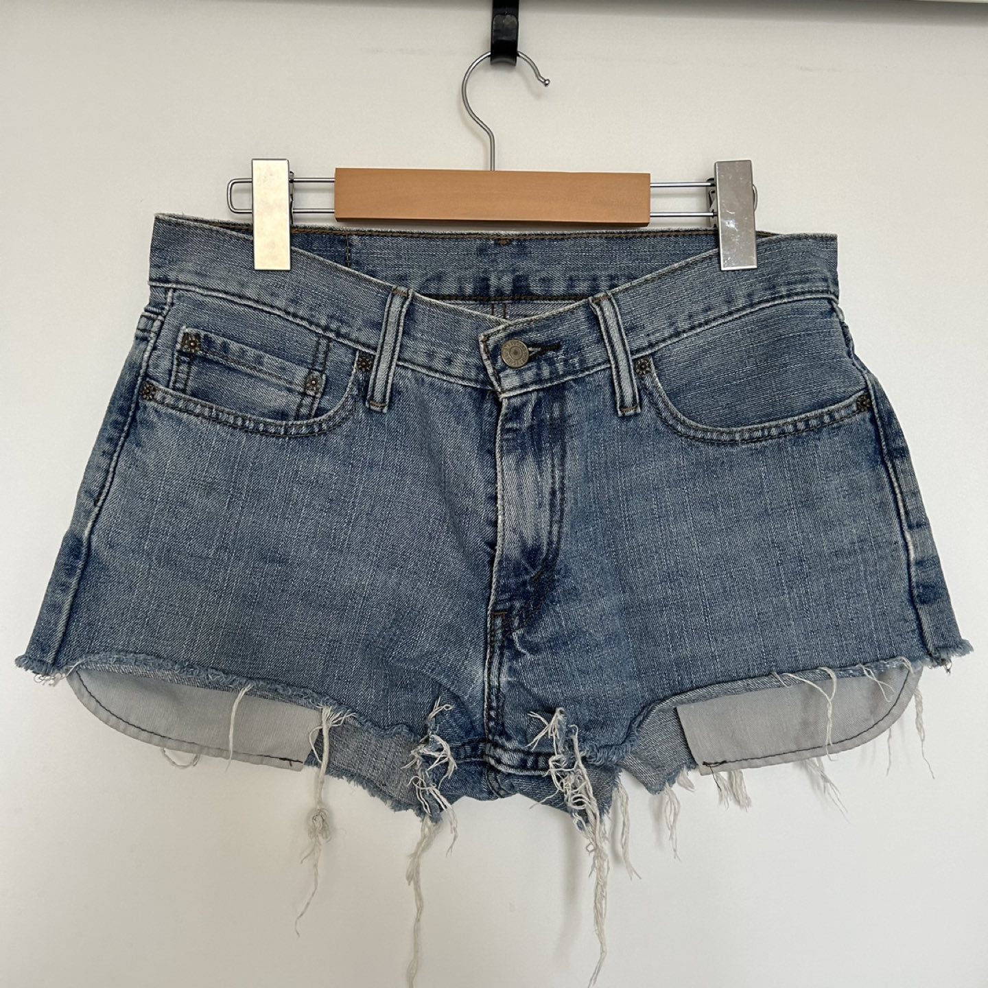 Levi’s mid-rise denim short shorts Listed as 30 waist but fit more like 27/28 Wore them a few times but they don’t fit me anymore Pick up around Sherbourne & Wellesley